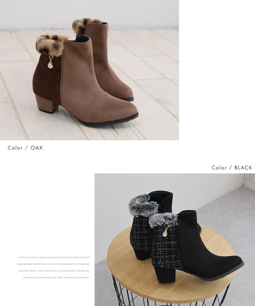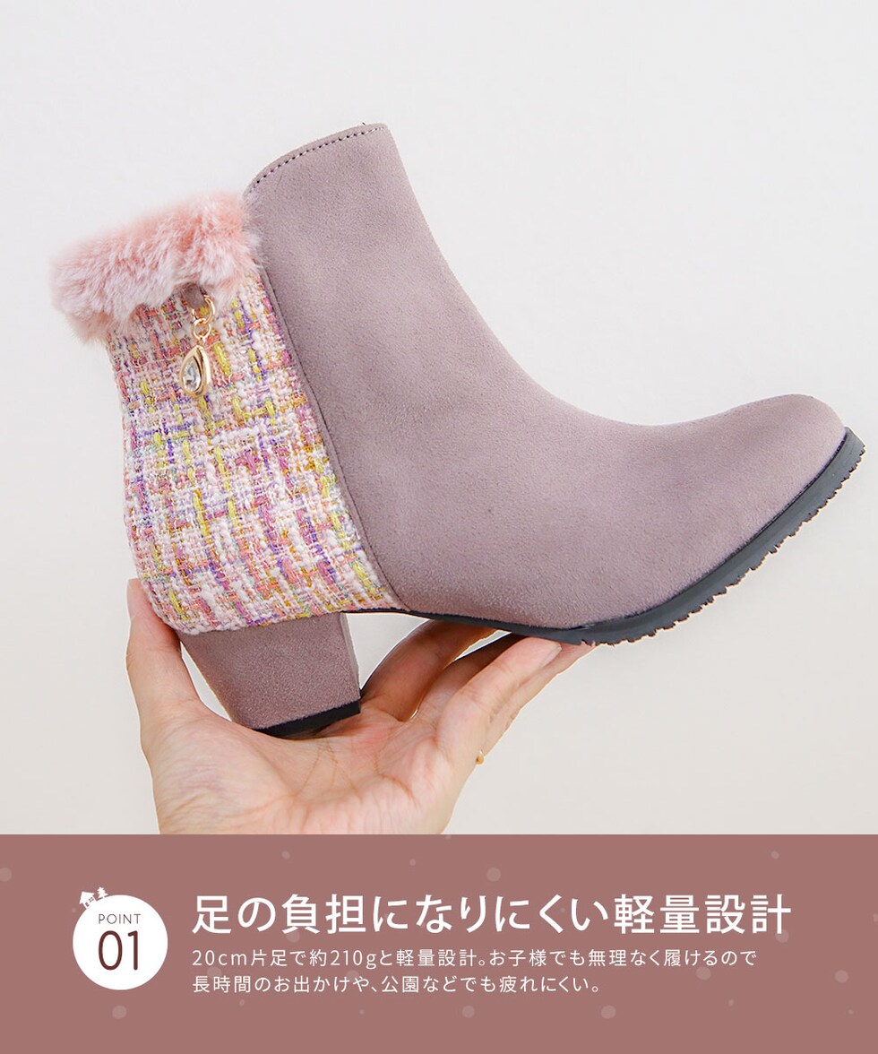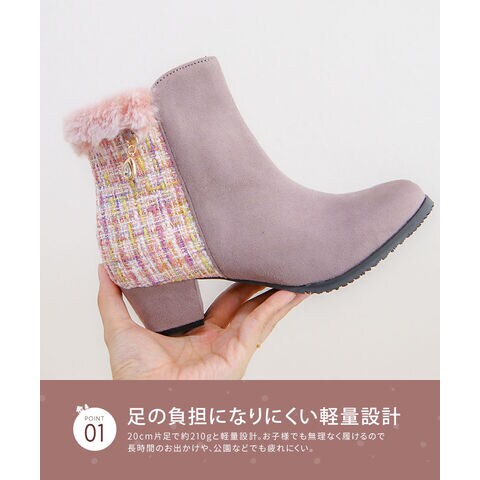 キッズ ショートブーツ ヒール 4cm スエード調 コンビカラー 女の子 インサイドファスナー ファー 防寒 シューズ 秋冬 5092のレビュー