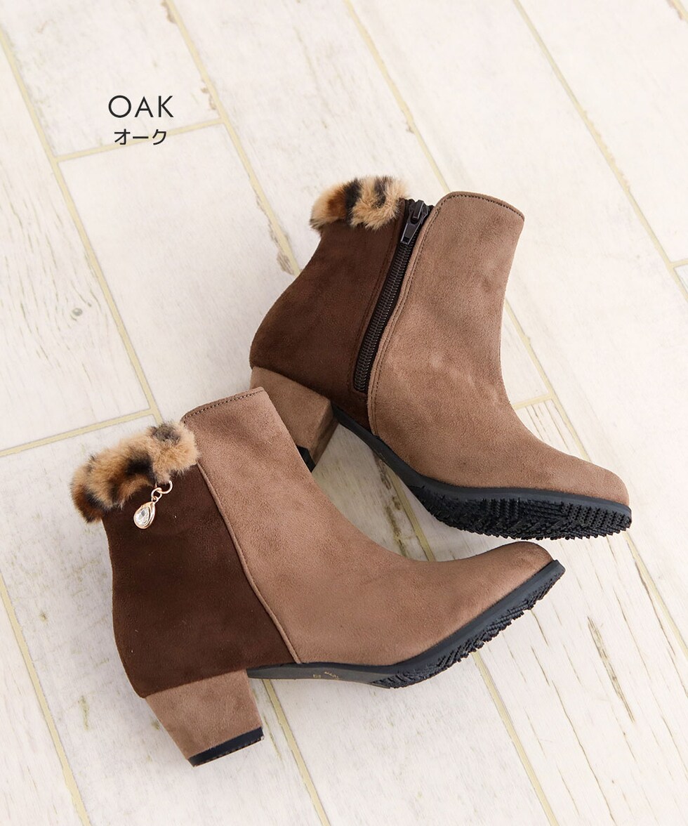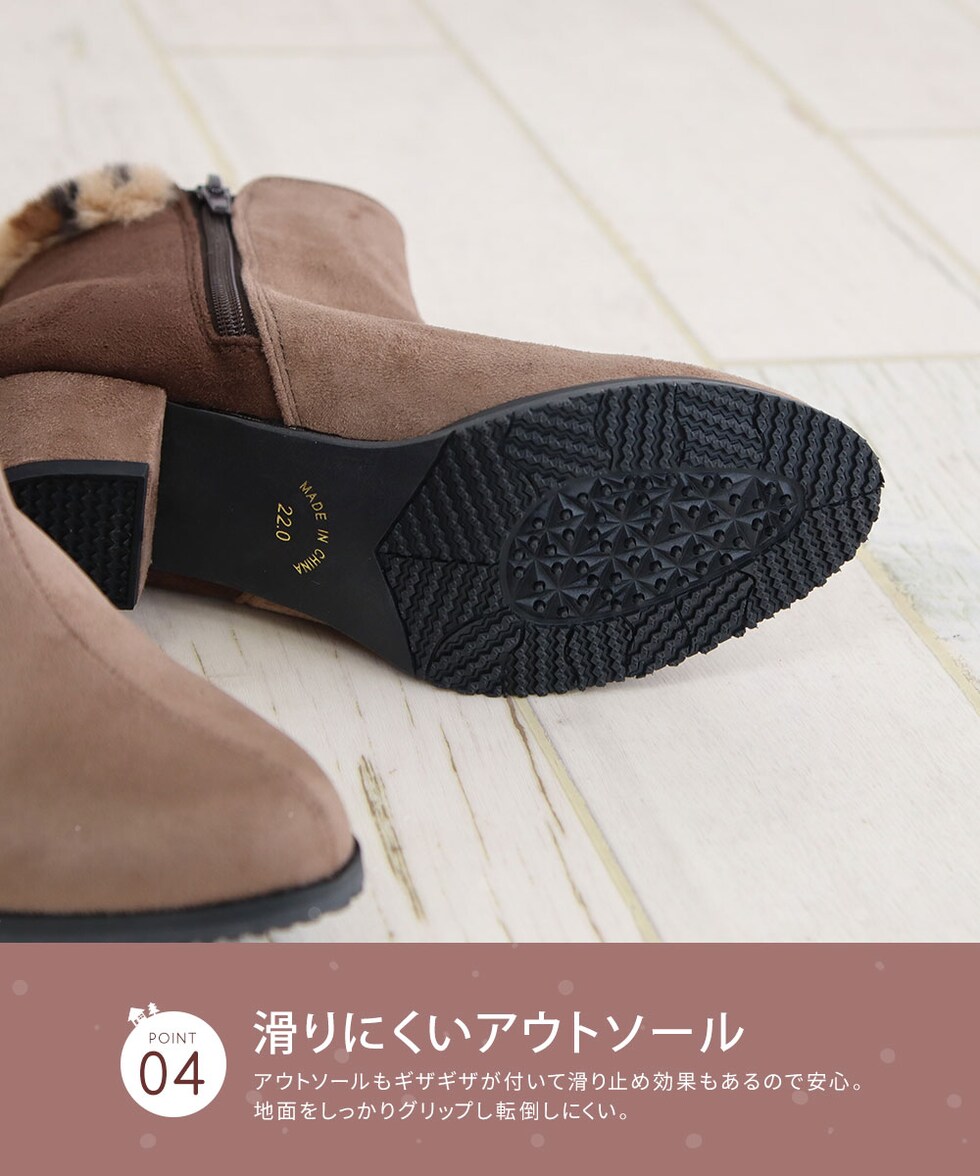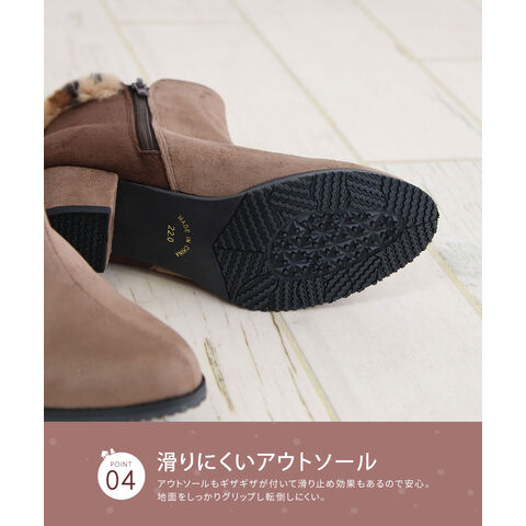 履き口にはふわふわのファーをあしらい、見た目にもあたたかく、寒い日のお出かけも快適に過ごせます。