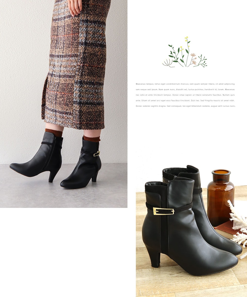 美しさと履き心地を両立した、女性らしさが際立つ7cmヒールショートブーツ。