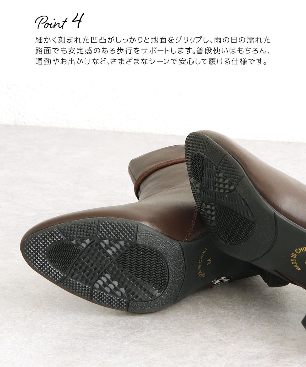 サイドファスナー付きで脱ぎ履きもスムーズ。時間がない朝でもサッと履ける手軽さも嬉しいポイントです。