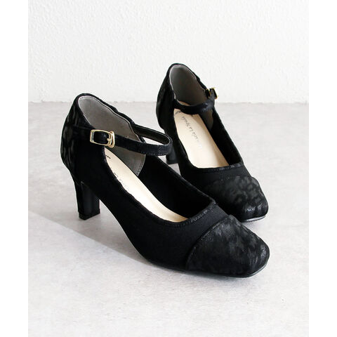 パンプス 痛くない 柔らかい ストラップ 靴 黒 ブラック フォーマル スクエアトゥ 走れる 脱げにくい 疲れにくい 結婚式 冠婚葬祭 7627