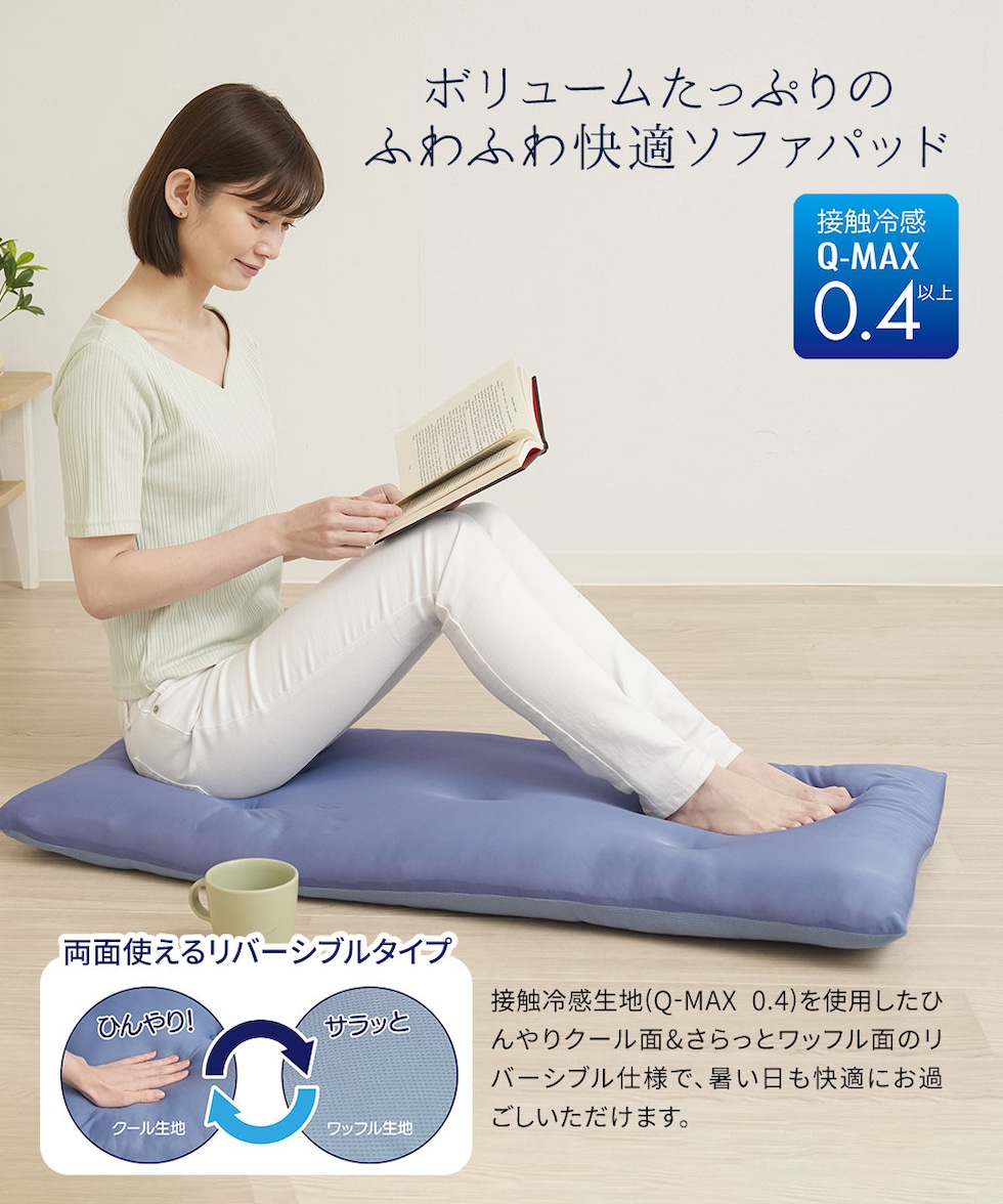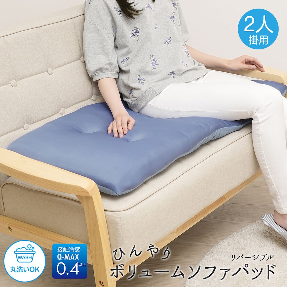 ソファパッド ソファー パット 接触冷感 Q-MAX ごろ寝 クッション 厚手 夏 0.4 洗える!ひんやりボリュームソファパッド 2人掛け用 201