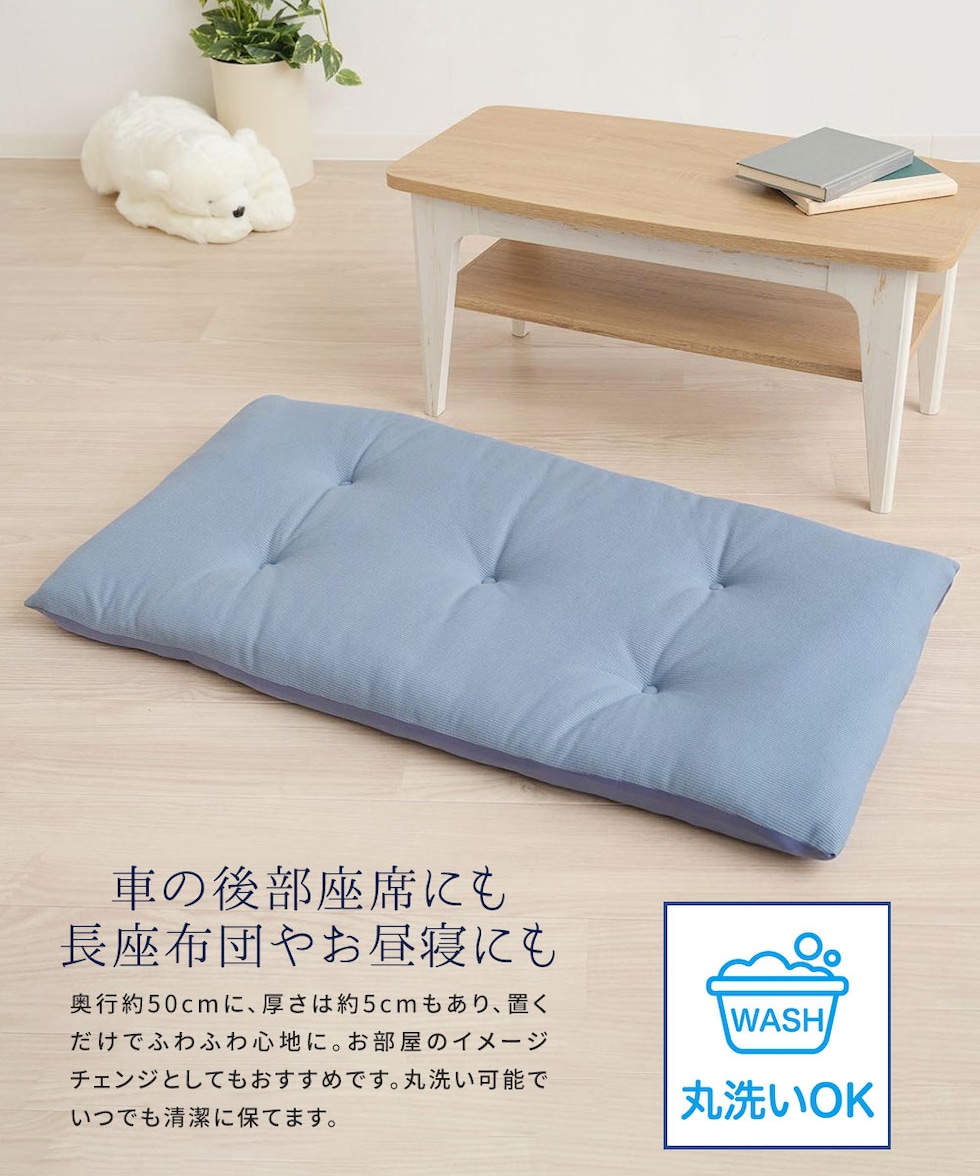 奥行約50cmに、厚さは約5cmもあり、置くだけでふわふわ心地に。