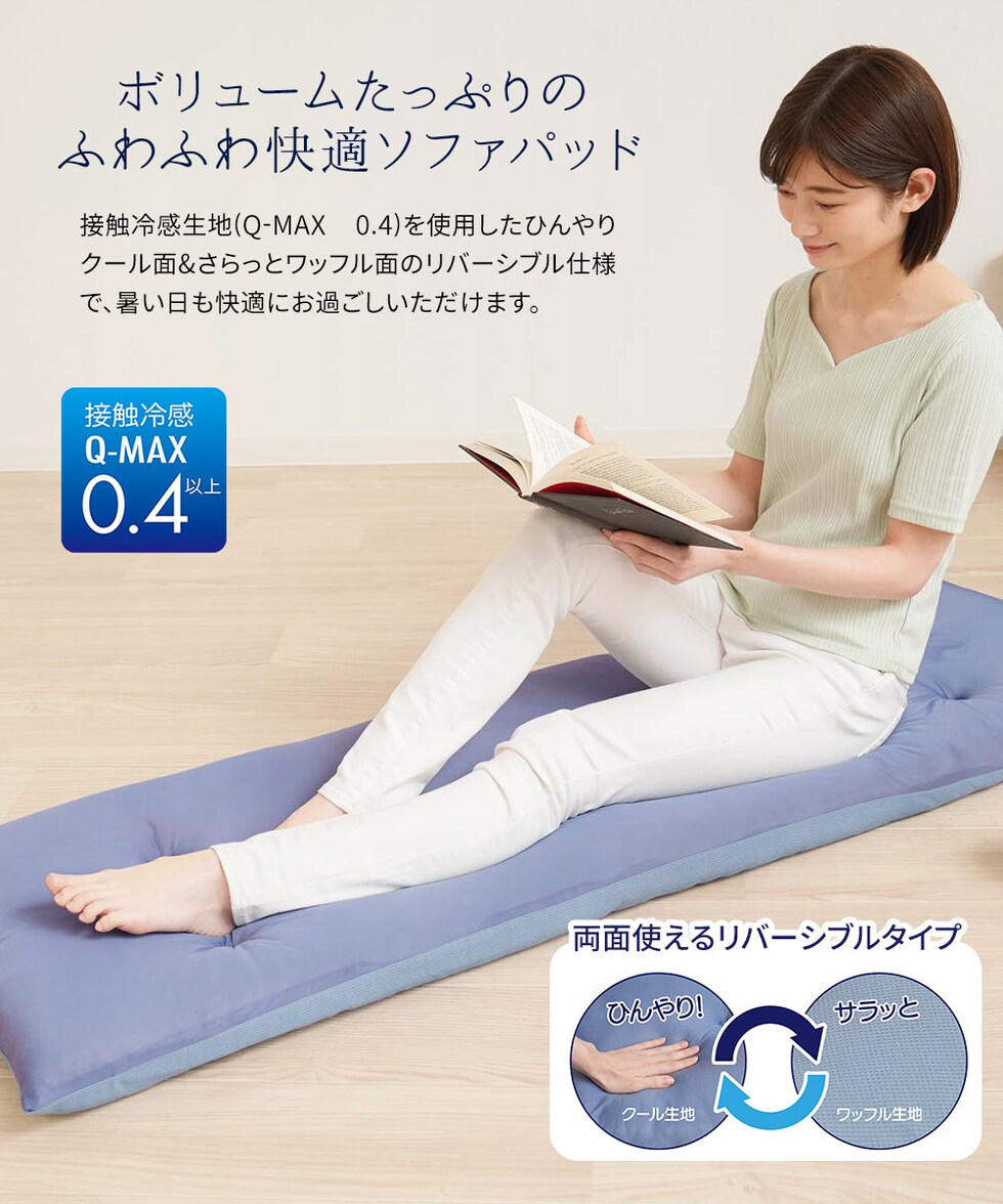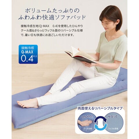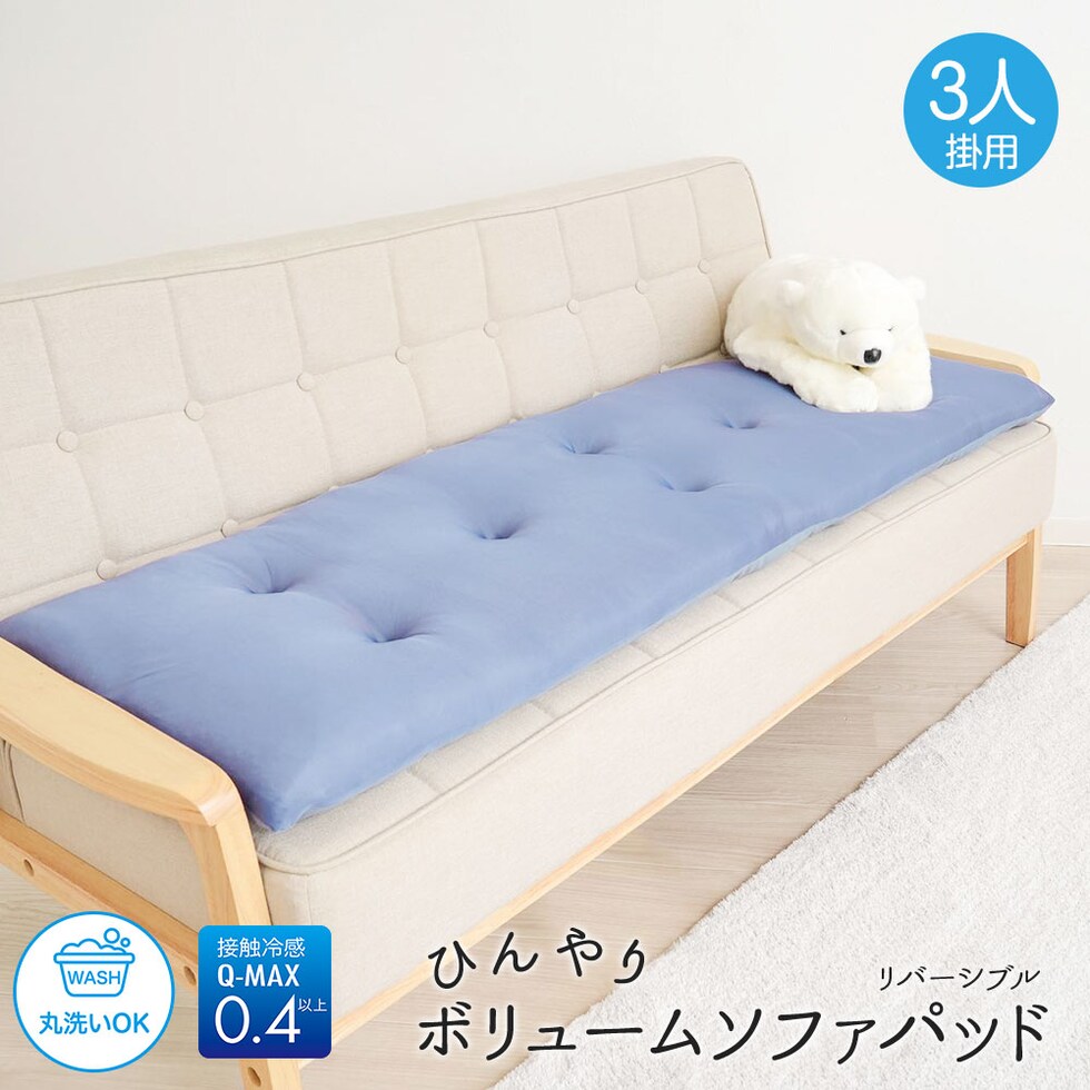 接触冷感 Q-MAX クッション 吸放湿綿 夏 暑さ対策 0.4 丸洗い リバーシブル 洗える!ひんやりボリュームソファーパッド 3人掛け用 202