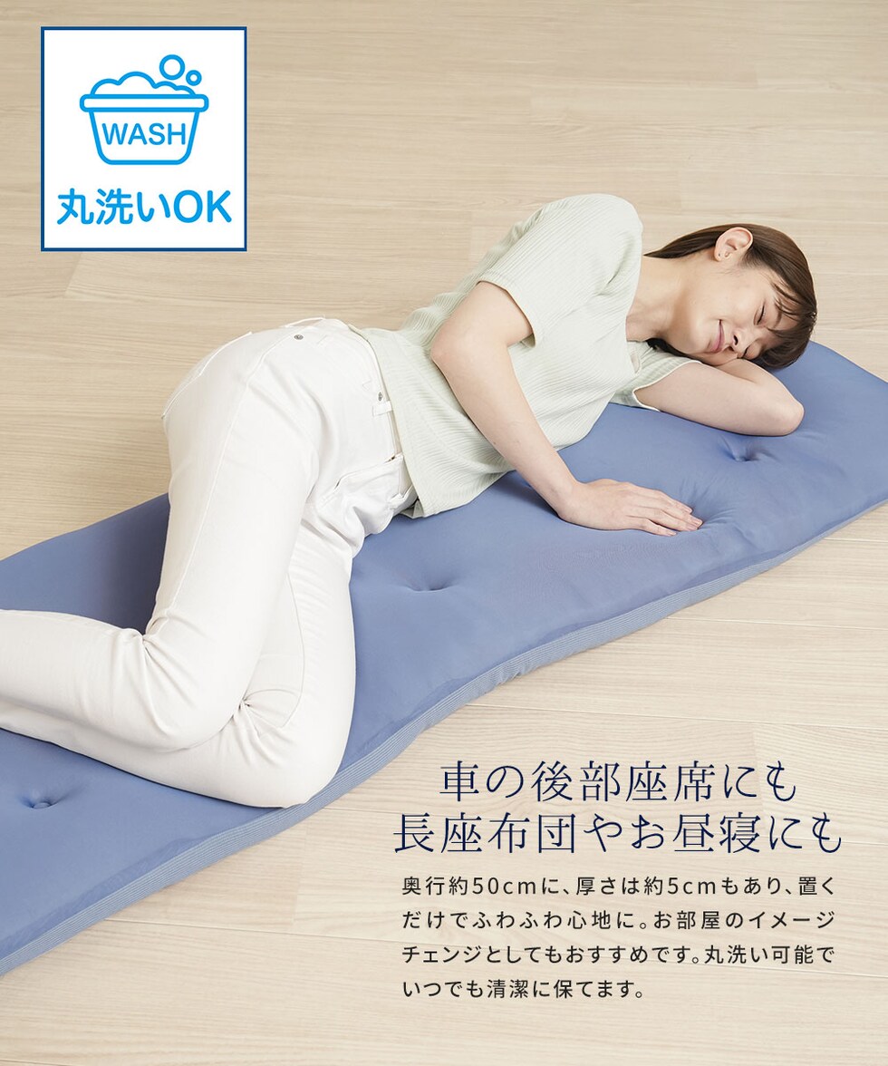 奥行約50cmに、厚さは約5cmもあり、置くだけでふわふわ心地に。