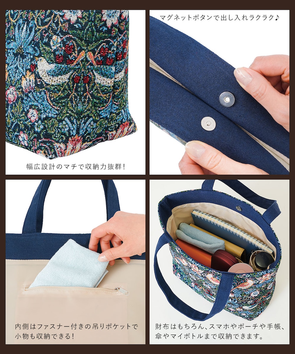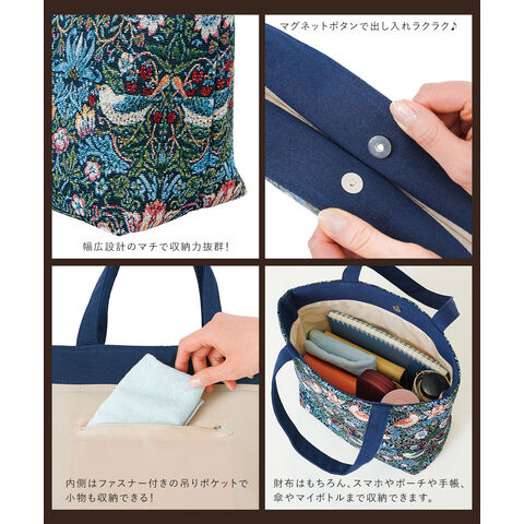 モリスワールドコレクション いちご泥棒 レディース 軽量 小さめ ハンドバッグ モダンデザイン クラシカル エレガント ジャガード織り手提げトートバッグ 207