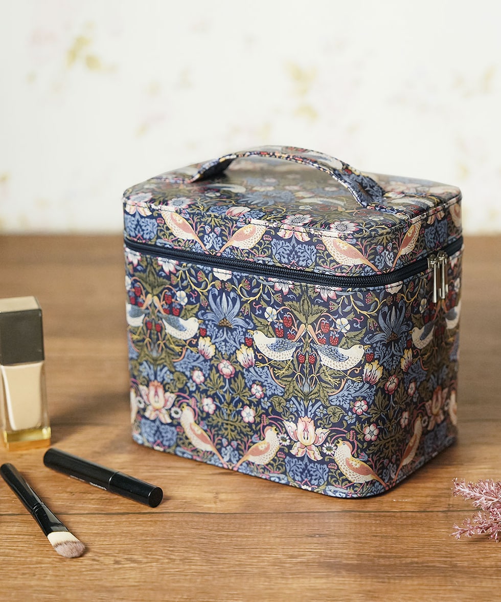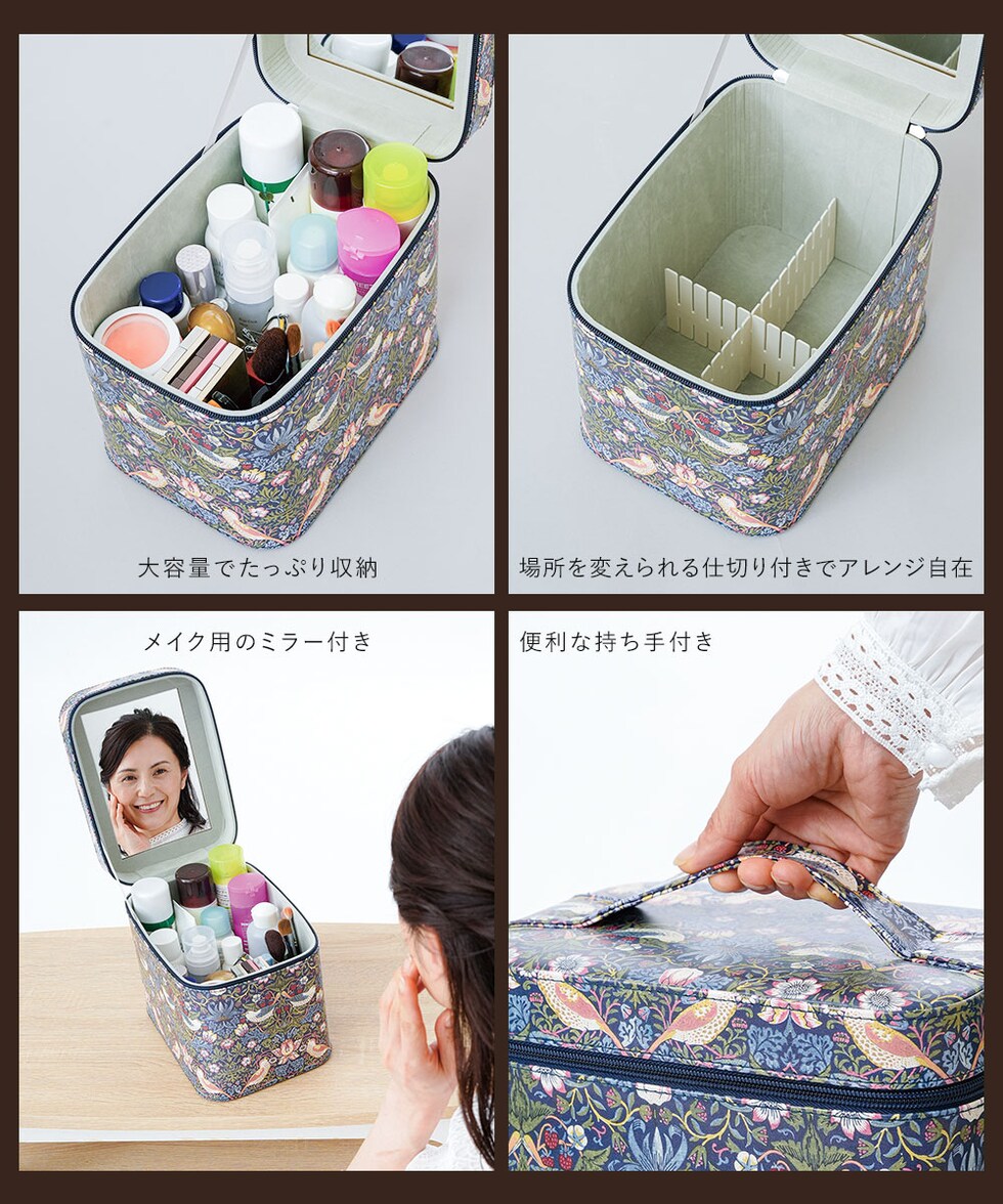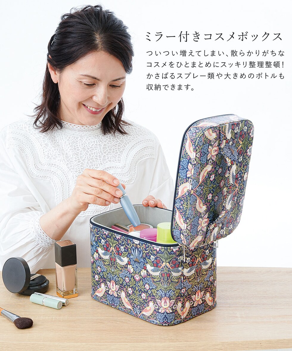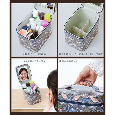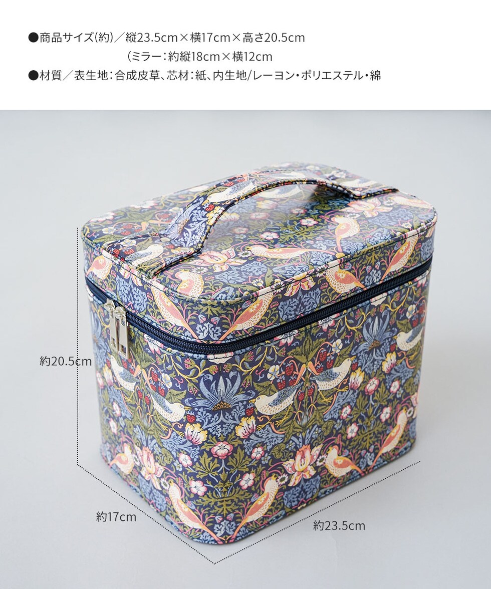 モリスワールドコレクション いちご泥棒 メイクボックス 鏡付き 大容量 ミラー バニティバッグ 化粧箱 仕切り モダンデザイン ミラー付きコスメボックス 208