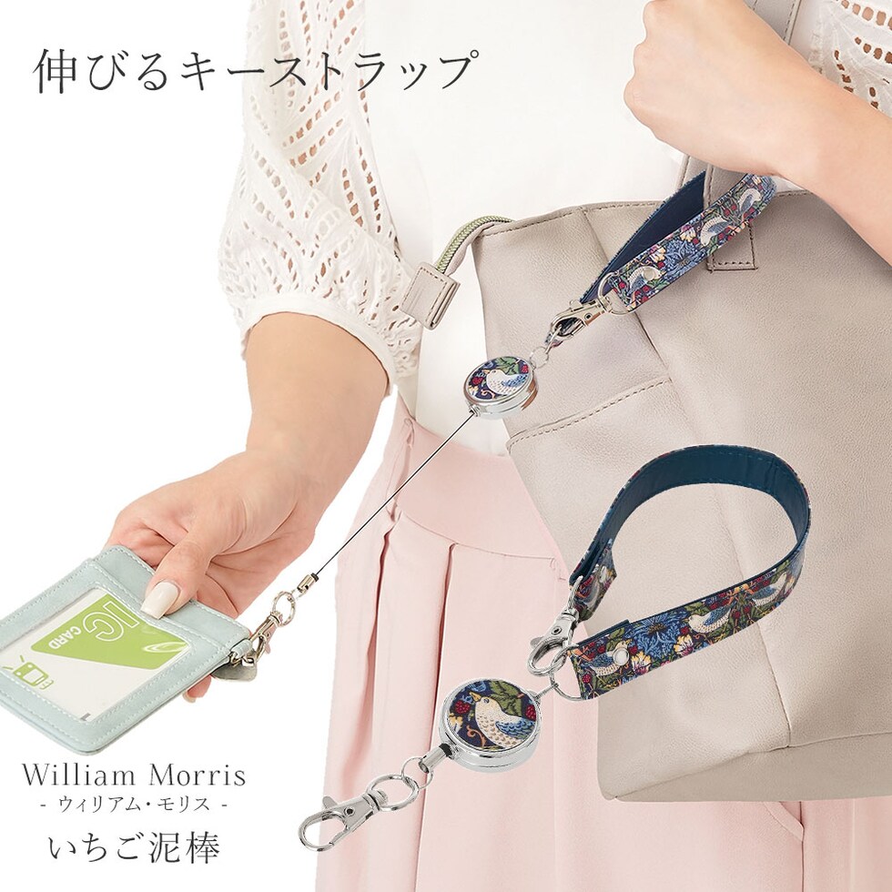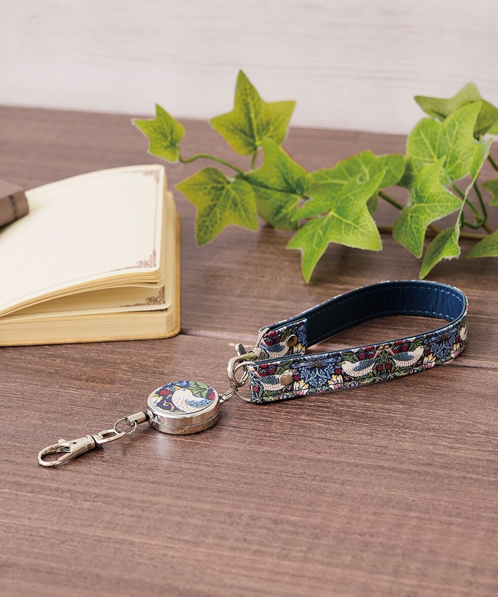 モリスワールドコレクション いちご泥棒 キーホルダー リール ストラップ カラビナ バッグ ベルト チャーム モダンデザイン 上品 伸びるキーストラップ 209