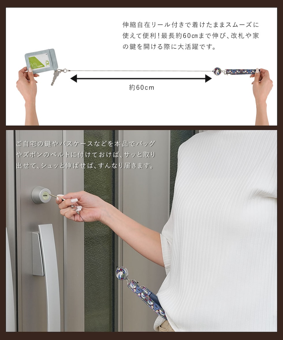 最長約60㎝まで伸び、改札や家の鍵を開ける際に大活躍です。
