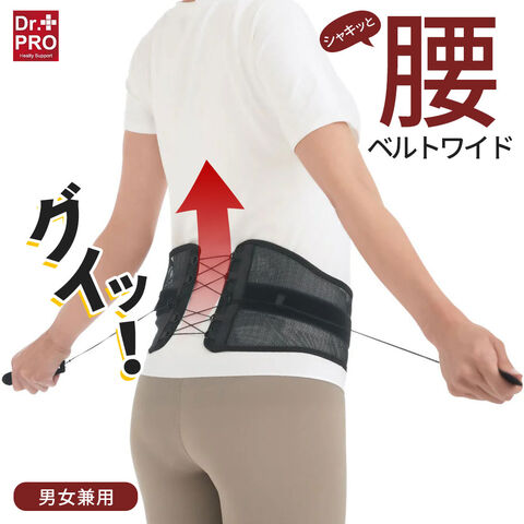 Dr.PRO シャキッと腰ベルト ワイド 腰痛 コルセット サポーター メッシュ 腰用サポート 薄型 ダイエット器具 軽量 レディース メンズ