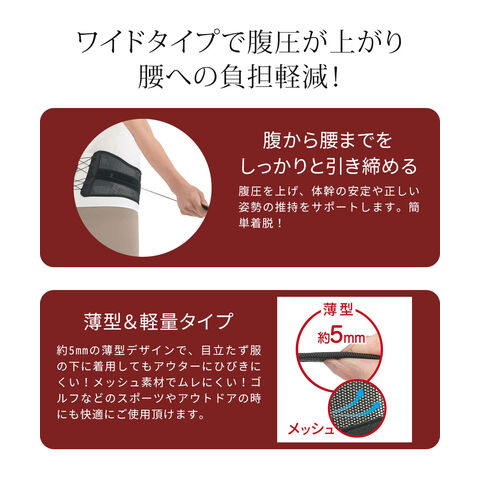 ■ワイドタイプで腹圧が上がり腰への負担軽減!