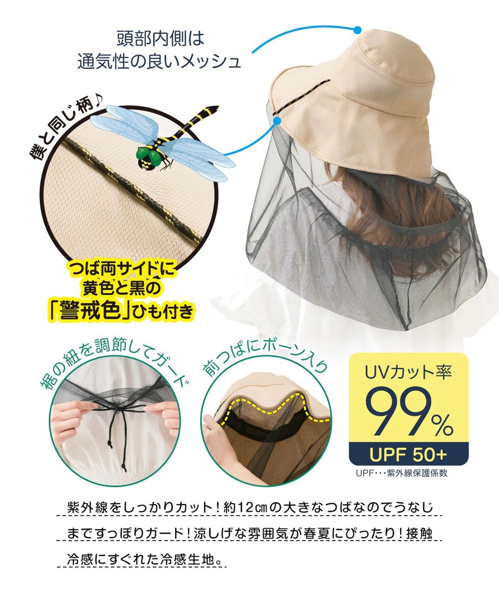 ■UVカット率99%!広いつばに付いたネットが顔まわりを360°虫からガードする!