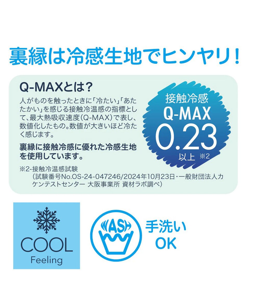 紫外線をしっかりカット!約12㎝の大きなつばなのでうなじまですっぽりガード!涼しげな雰囲気が春夏にぴったり!接触冷感にすぐれた冷感生地。裏縁はQ-MAX0.23以上の冷感生地を使用でヒンヤリ!頭部内側は通気性のよいメッシュ素材を使用でムレにくく快適♪!