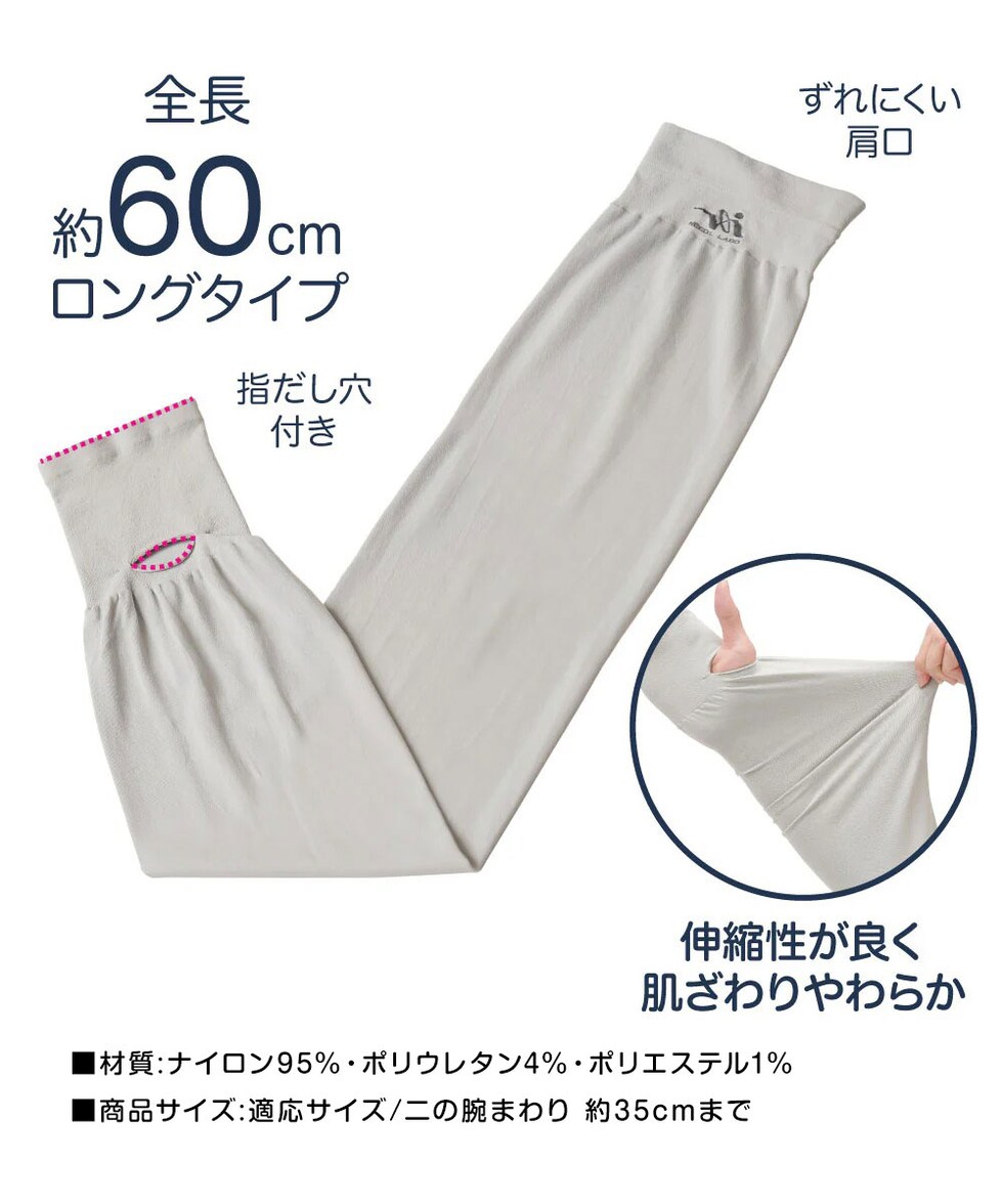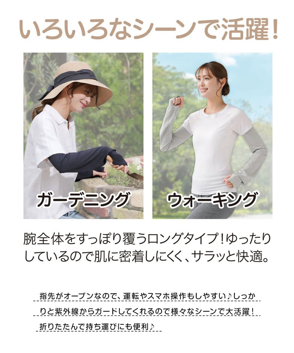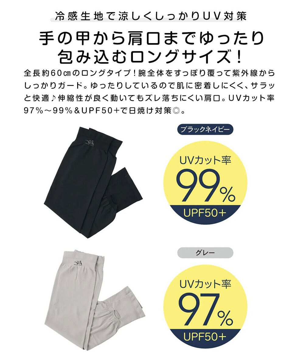 ■UVカット率97%以上!手の甲から肩口までゆったり包み込む約60㎝のロングサイズ!冷感生地で涼しくしっかりUV対策♪
