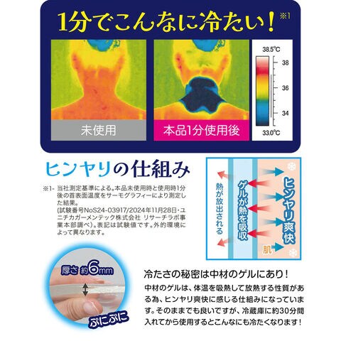 冷蔵庫に約10分入れれば、体感温度差 約-22.3℃!首の後ろは幅10cmで広い範囲でカバー!厚さ約6mmのぷにぷにやわらかゲルのフィット感がたまらない!首まわり360°ひんやり♪ぷにぷにやわらか冷感ゲルで、暑い季節を乗り越える!エコクールゲルネックバンド!年々長くなっているように感じる暑いシーズンが今年もやってきます。これまでにハンディタイプの扇風機や、ネックリングなどたくさんの暑さ対策グッズが出てきましたが、これまでにない新しいCOOLアイテムを開発しました!その名もエコクールゲルネックバンド!夏のうだるような暑さには、毎日うんざり・・・。気象庁のデータによると、2024年は平年値(20年までの30年間平均)を1.48℃上回り、1898年の統計開始以降で平均気温が最も高くなったと発表しています。しかし、毎日を頑張る私たちは、暑さに負けてなどいられないのが現実。そこで、ただ冷たいだけでなく、首元にフィットし、肌あたりも良く、気持ちよさが癖になるエコクールゲルネックバンドを開発しました!こ~んなに柔らかいので、首あたりも気持ちよくピッタリフィット♪