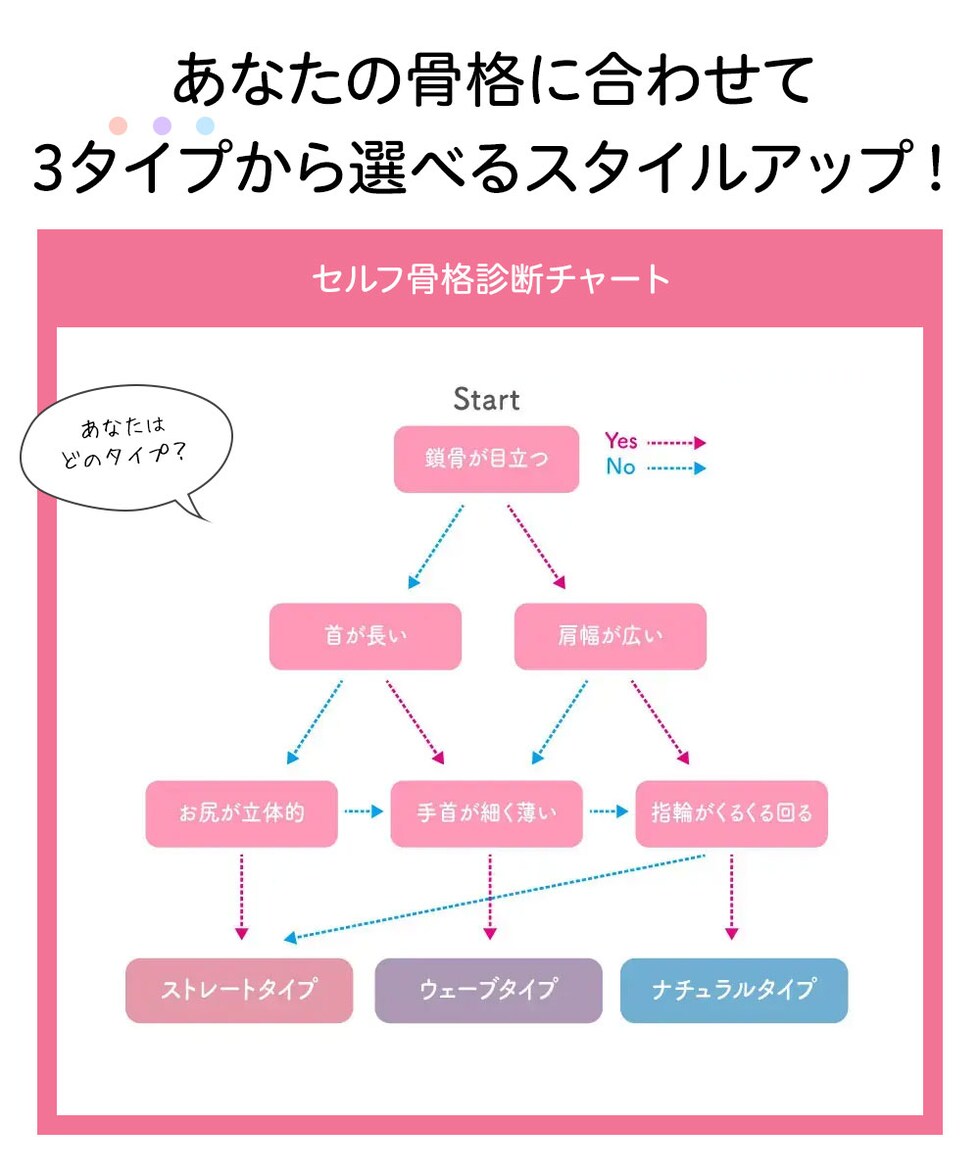 ストレート・ウェーブ・ナチュラル、3つの骨格タイプ別に選べる理想の1枚