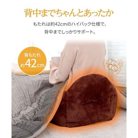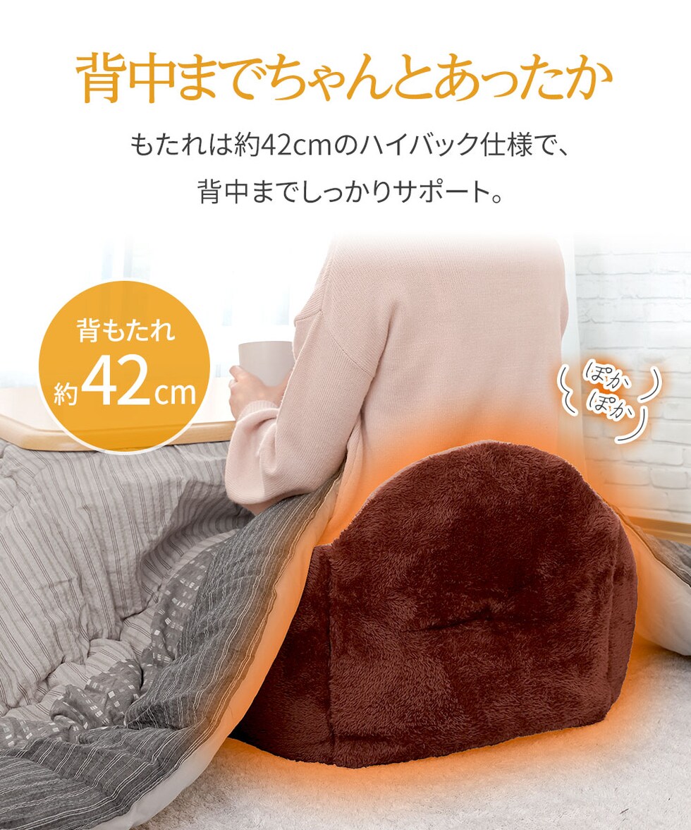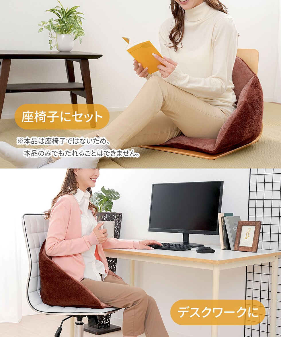 椅子やこたつ、車の中でも使用できるので、さまざまなシーンで温かさを楽しめるクッションです。