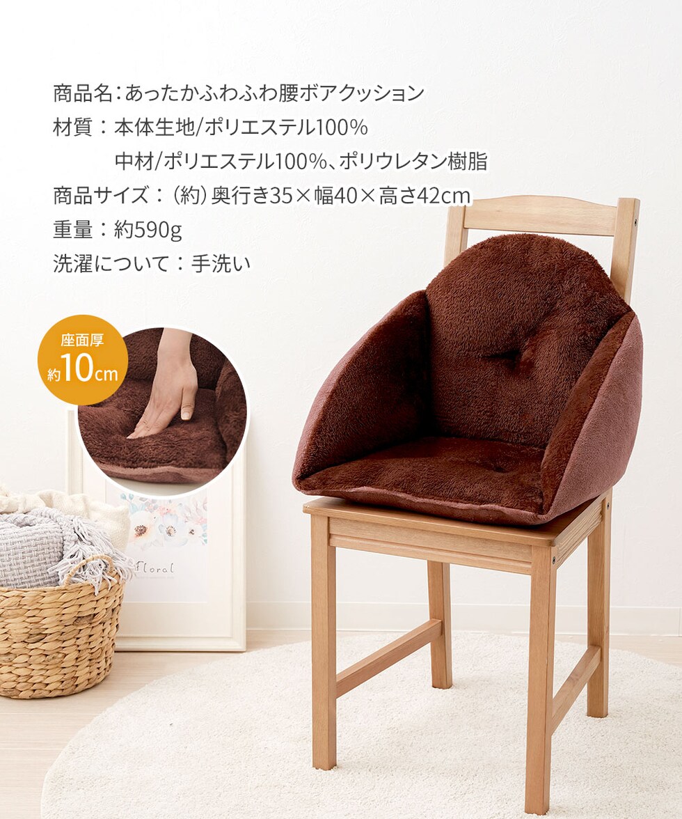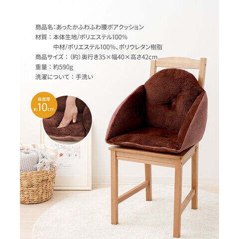 あったかふわふわ腰ボアクッション ぬくぬく あったか 暖か エコ 節電 冬 寒さ 防寒 茶色 ブラウン あったかふわふわ腰ボアクッション 240