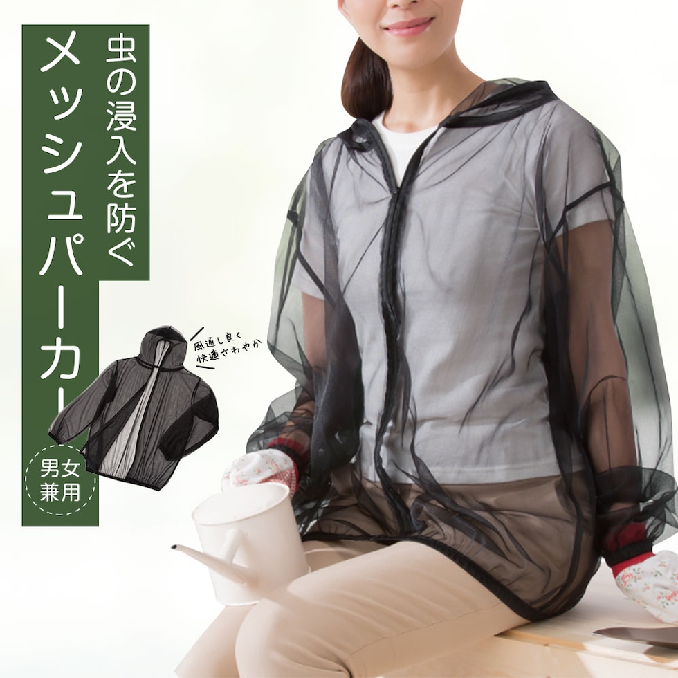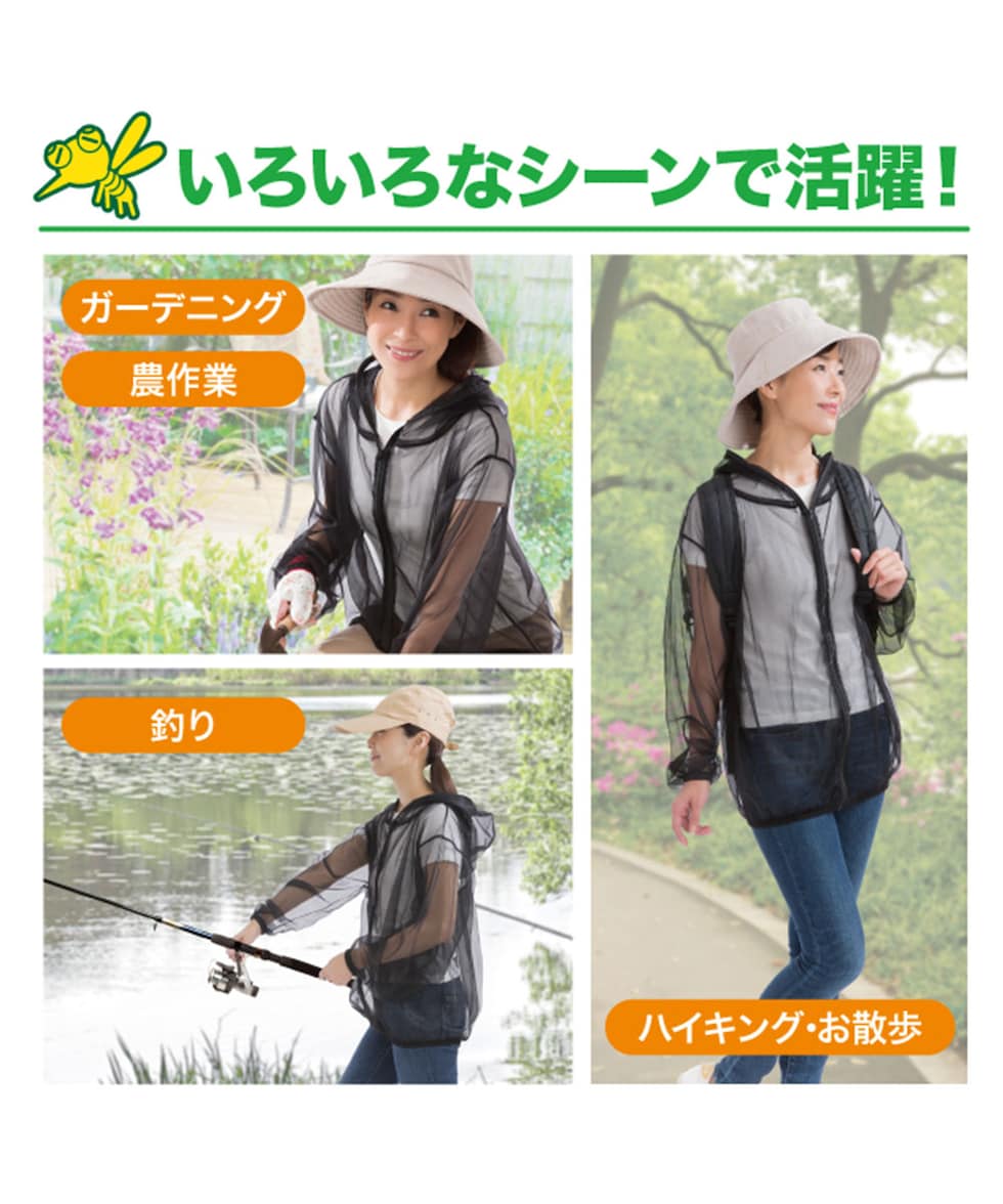 顔まですっぽり虫よけパーカー 農作業 防虫ネット パーカー 虫よけ 虫除けネット メッシュパーカー レディース メンズ 黒 蚊 蚊よけ 顔 夏用 37