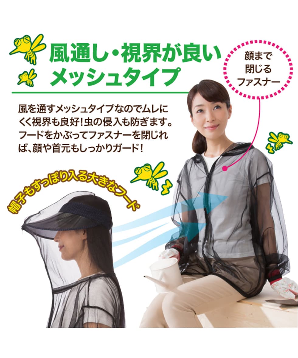 虫の侵入をブロック!顔まですっぽり虫よけパーカー