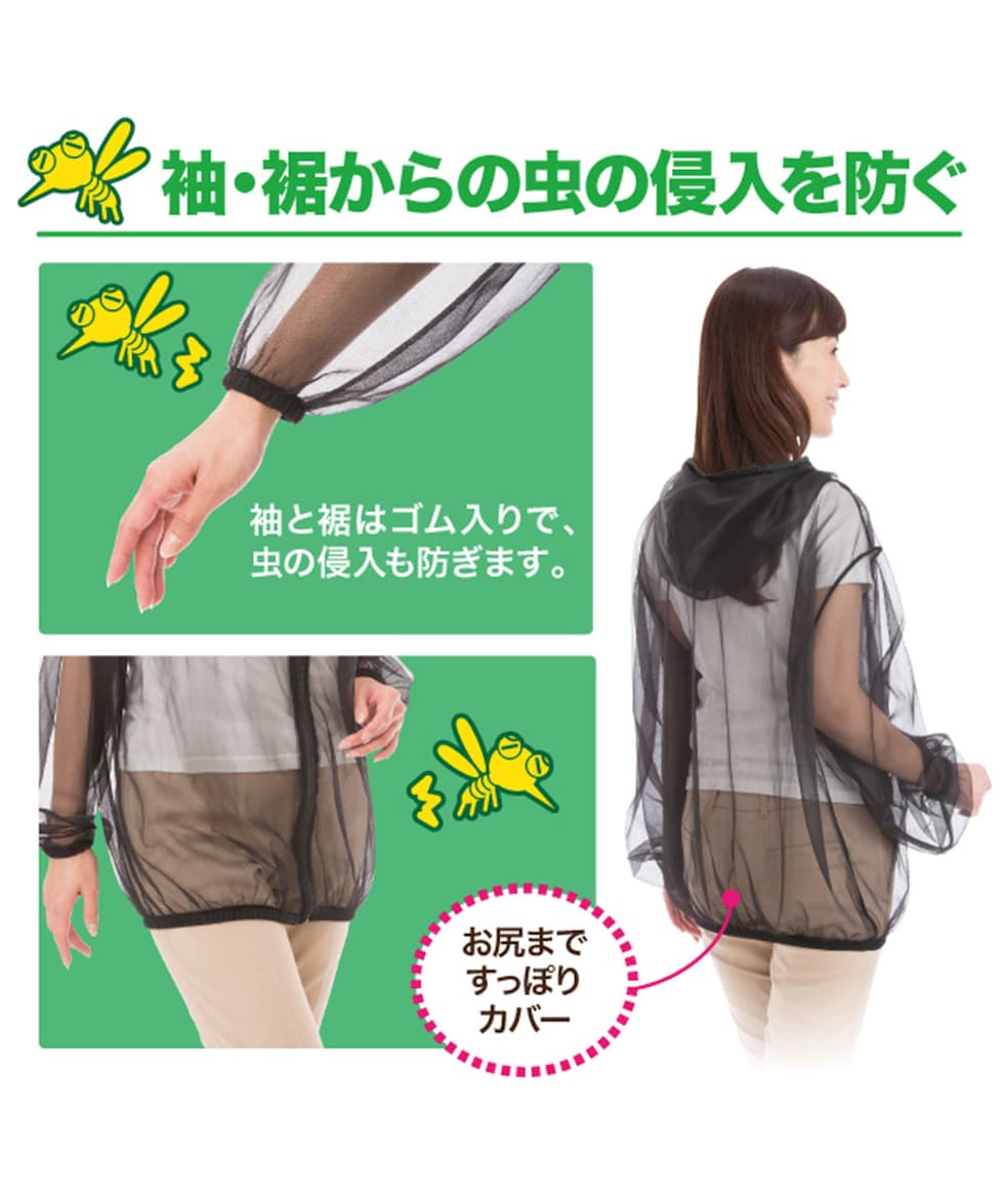 袖やお尻まである裾からの虫の侵入も防ぐから安心!