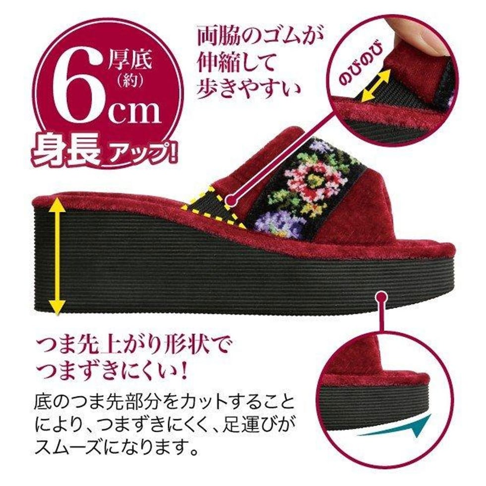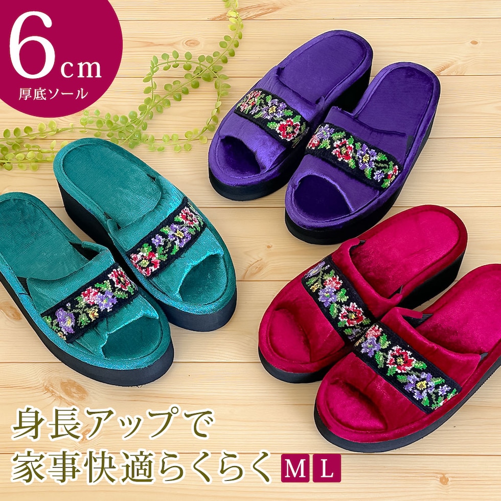 シェニール織り 厚底らくらくスリッパ ルームシューズ レディース 厚底 スリッパ 室内 室内履き オフィス 内履き 家履き 刺繍 華やか ヒール 53
