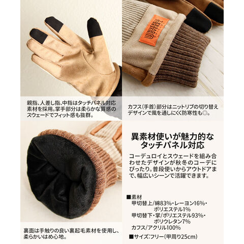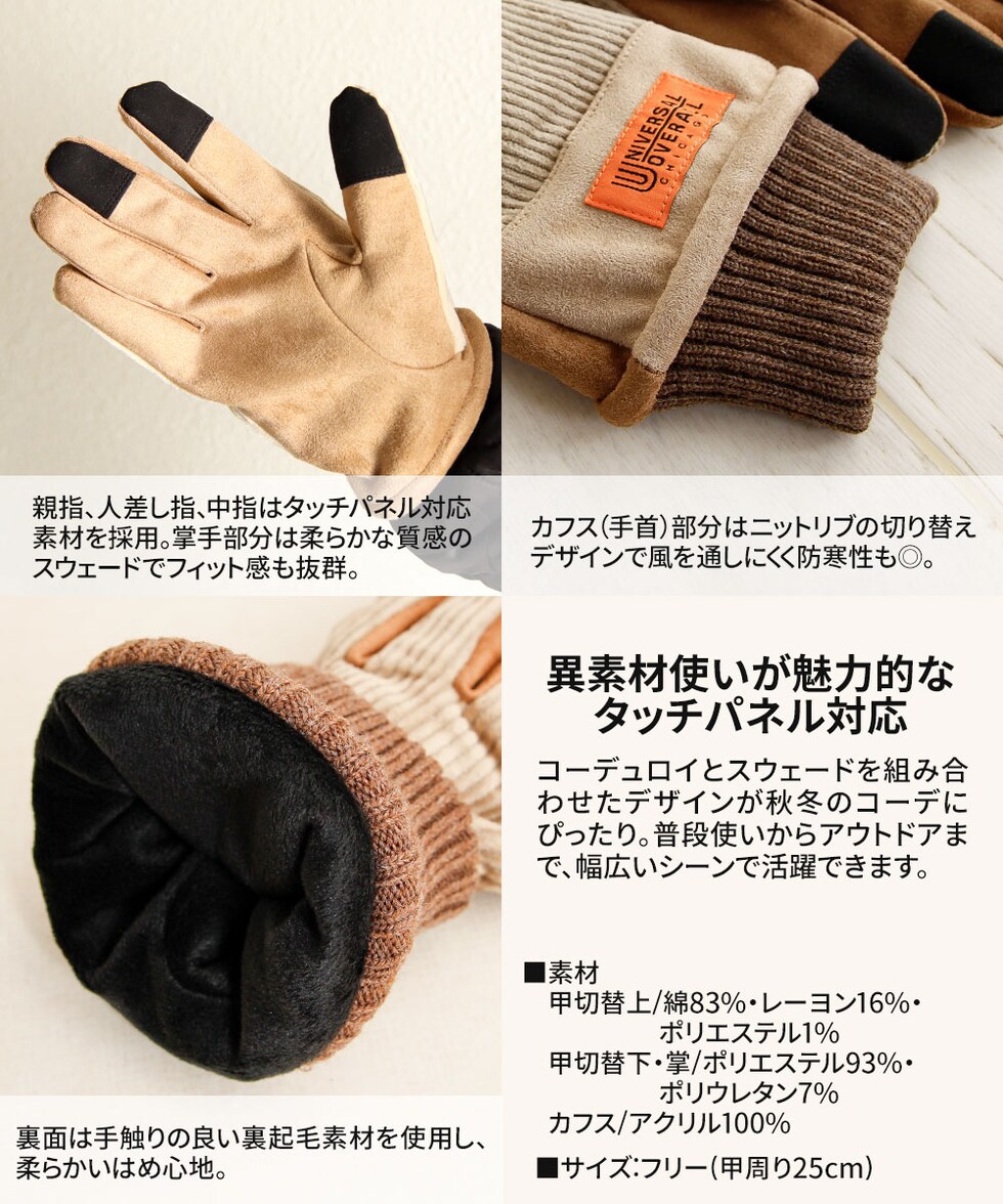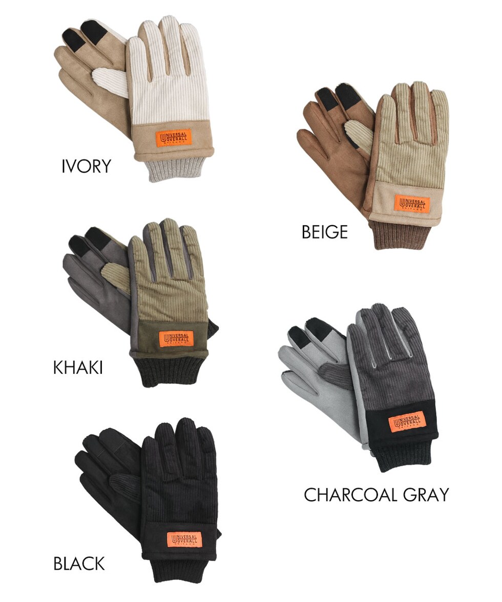 UNIVERSAL OVERALL ユニバーサルオーバーオール 手袋 防寒 グローブ 暖かい コーデュロイ スマホ対応 ブランド スマホ t1326