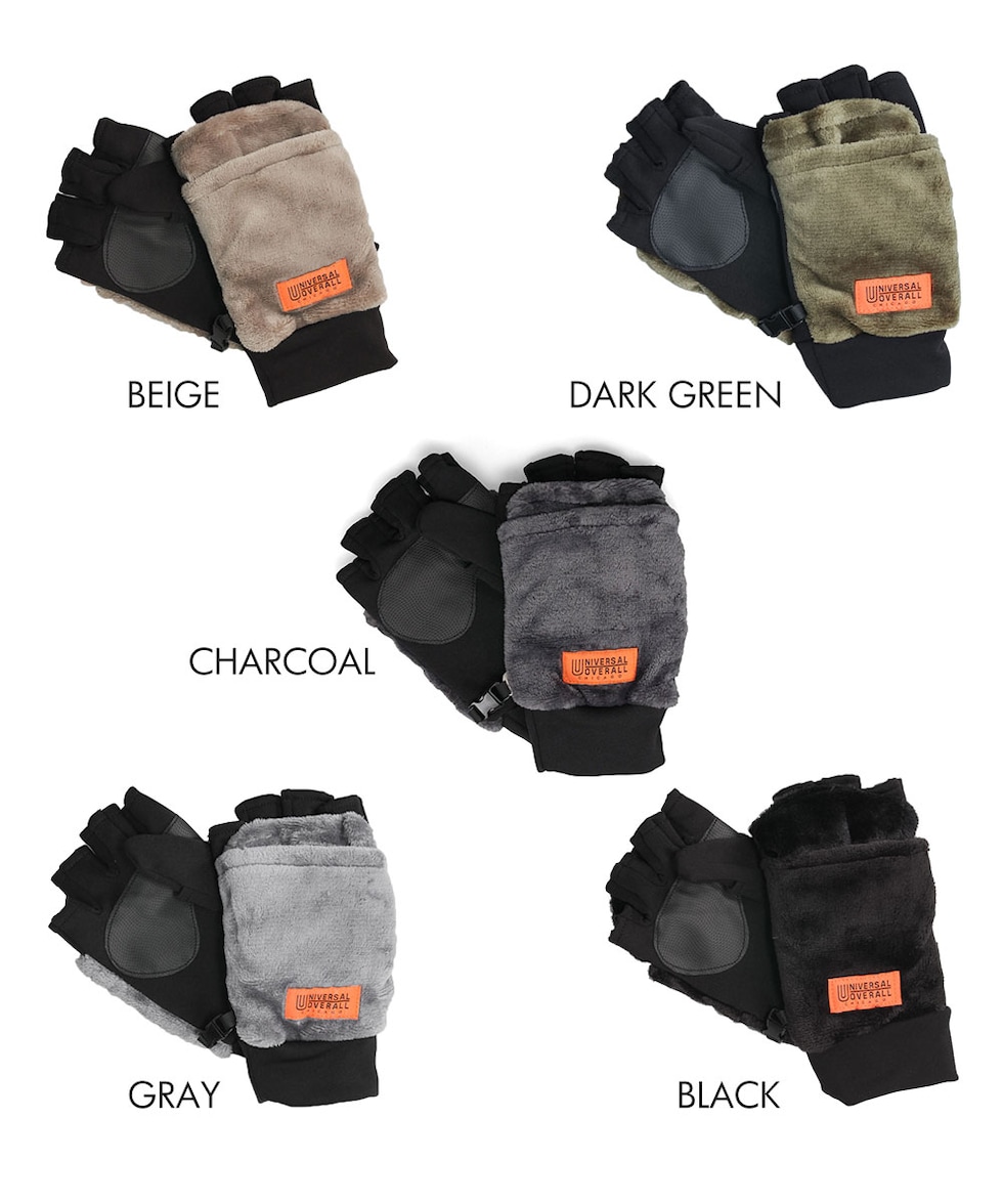 UNIVERSAL OVERALL ユニバーサルオーバーオール 手袋 暖かい スマホ対応 フード ミトン グローブ スマホ 滑り止め 黒 ブラック UO t1446