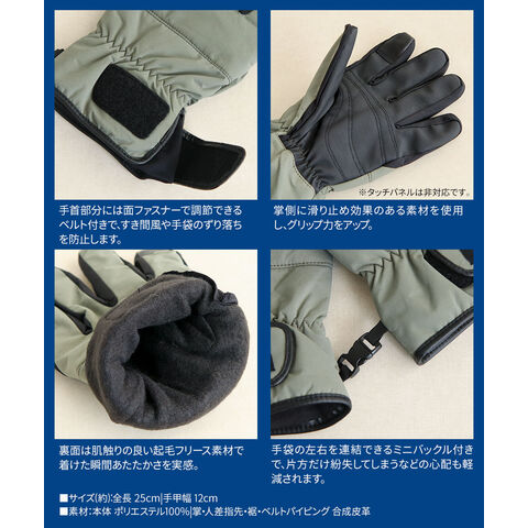 防風・撥水仕様で通勤通学からレジャーやアウトドアにも使える防寒グローブ。