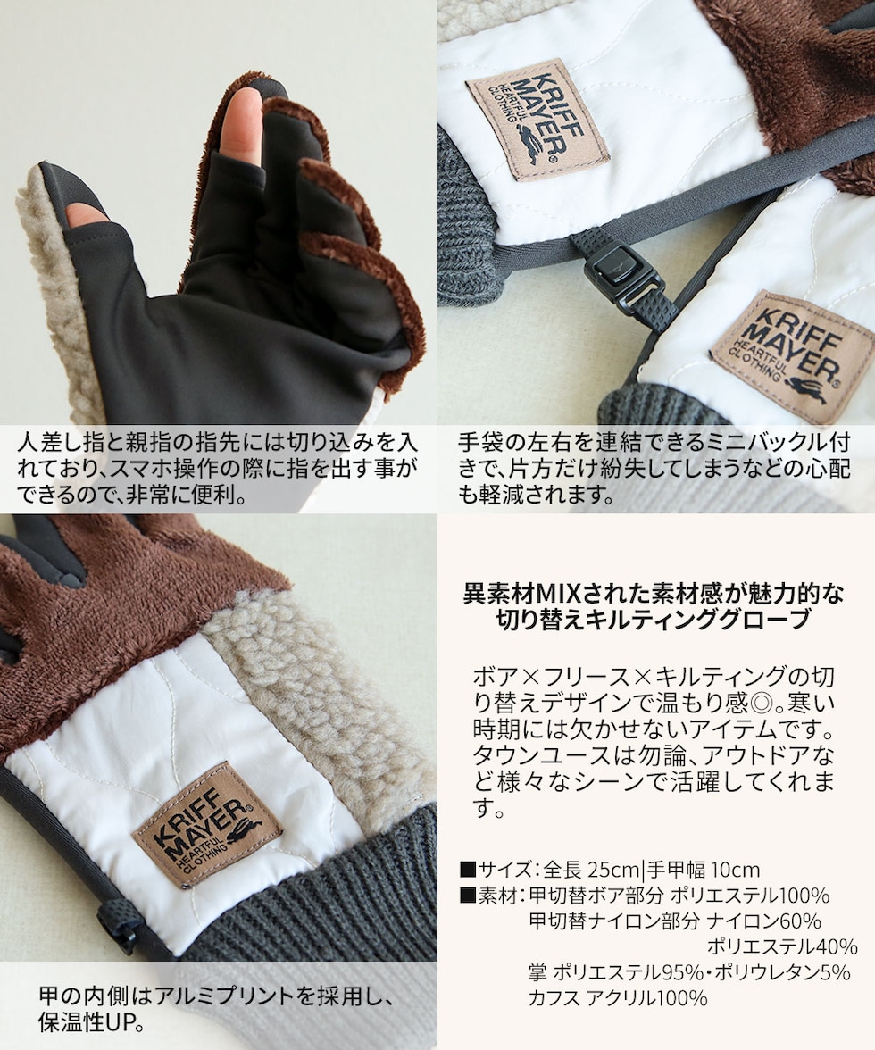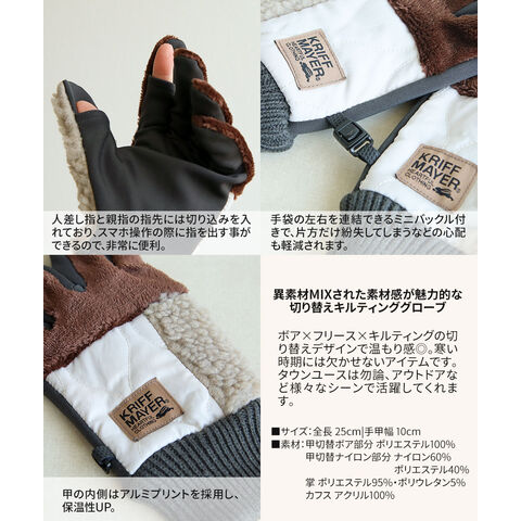 異素材MIXされた素材感が魅力的なKRIFF MAYERの切り替えキルティンググローブ。