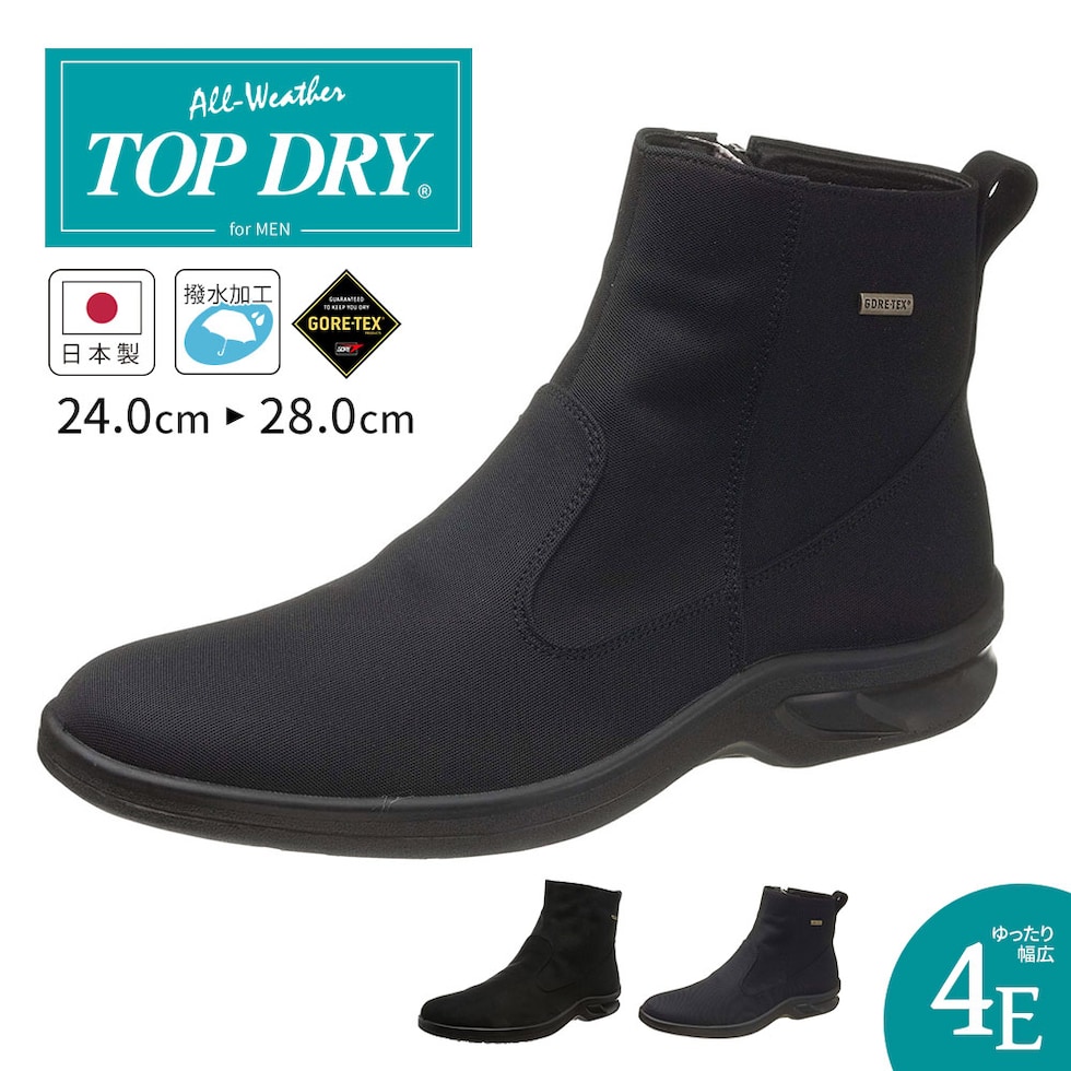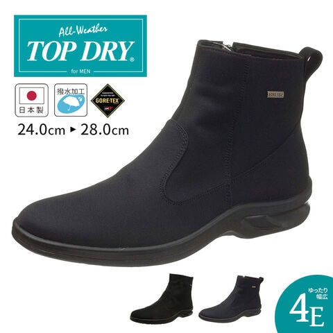 ショートブーツ メンズ 防水 防滑 撥水 幅広 4E ゴアテックス 男性用 サイドファスナー 日本製 通勤 トップドライ TOPDRY TDY3835