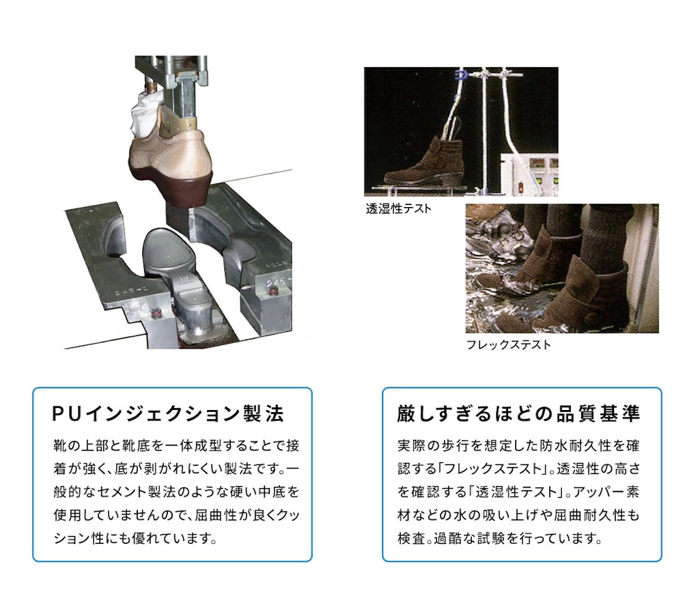 ソールとアッパーの接合部に隙間が無く密閉性が高いので、水が浸入しにくく