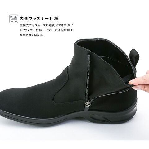 ゆったり幅広4Eサイズの、男性向けファスナー付きショートブーツ。