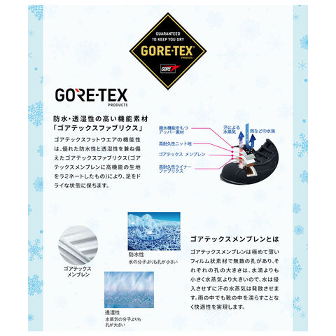 ■防水・透湿性の高い機能素材「ゴアテックスファブリクス」を採用。