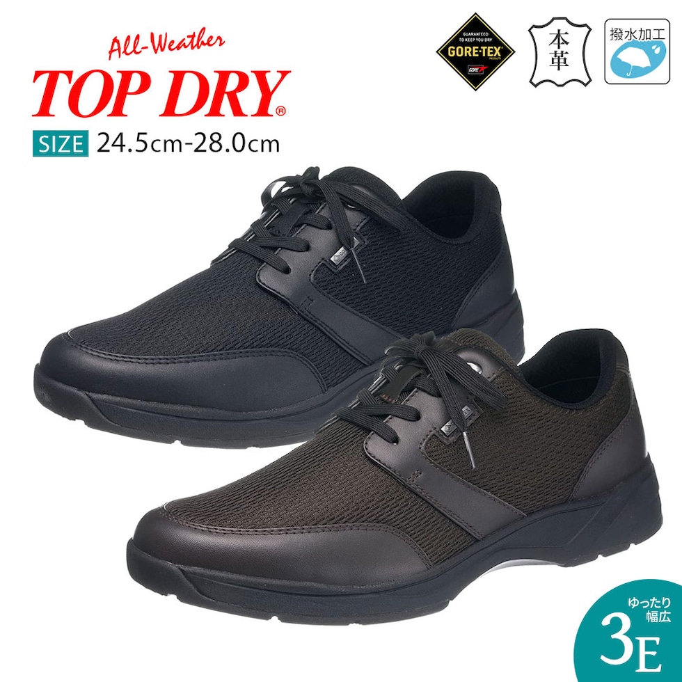 レインシューズ スニーカー メンズ 防水 防滑 撥水 幅広 3E ゴアテックス 雨靴 通気性 雨 黒 ブラック ブラウン TOPDRY TDY7305