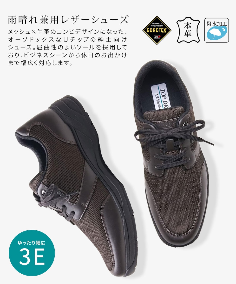 レインシューズ スニーカー メンズ 防水 防滑 撥水 幅広 3E ゴアテックス 雨靴 通気性 雨 黒 ブラック ブラウン TOPDRY TDY7305のレビュー