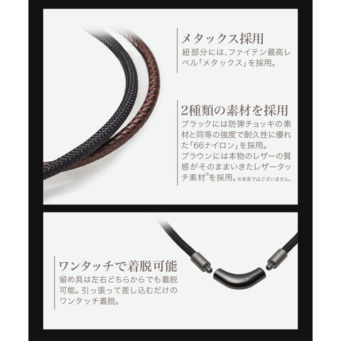 紐部分には、ファイテン最高レベル「メタックス」を採用。