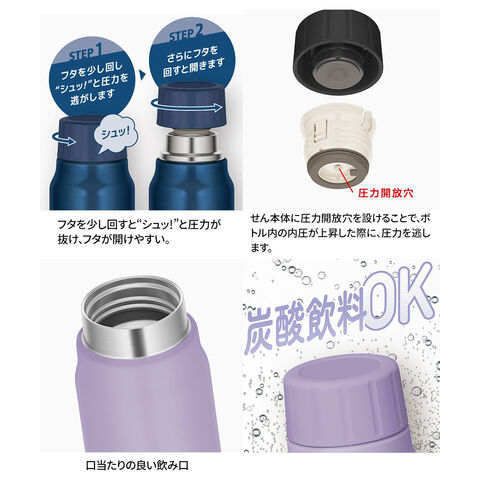 炭酸飲料OK!フタを少し回すと中の圧力が逃げる新構造のフタを採用。