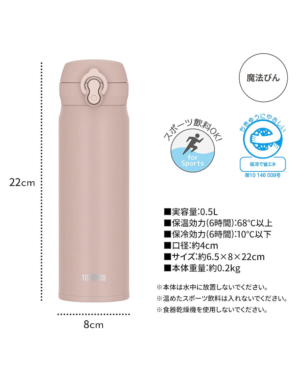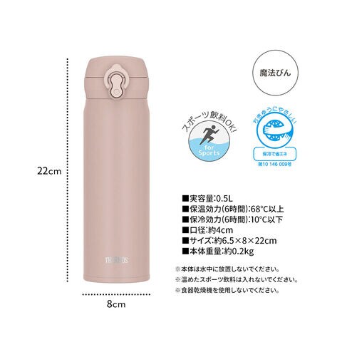 サーモス 水筒 ボトル ワンタッチ 500ml 保温 保冷 魔法びん 直飲 ベージュ 真空断熱 ケータイマグ JNL-S500 THERMOS