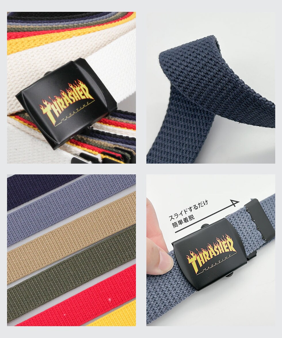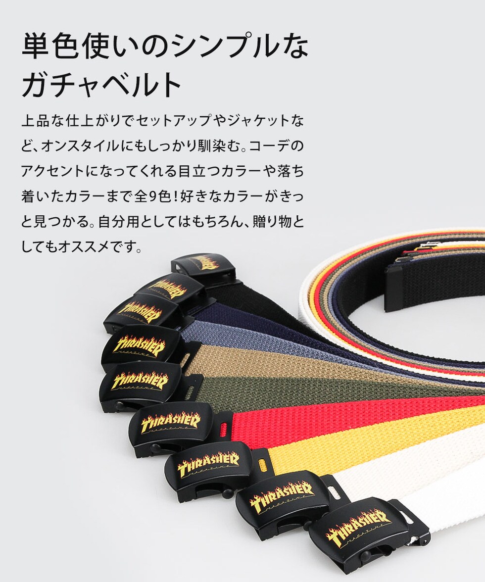 スラッシャー ベルト メンズ ブランド 日本製 レディース おしゃれ カラー バックル 穴なし ストリート アメカジ THRASHER thr-016