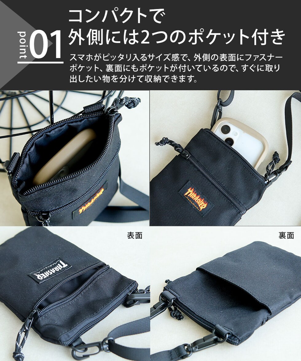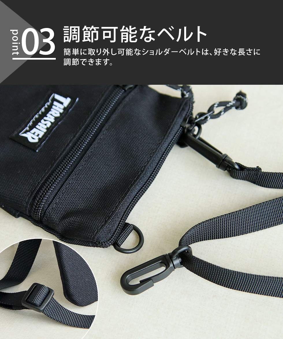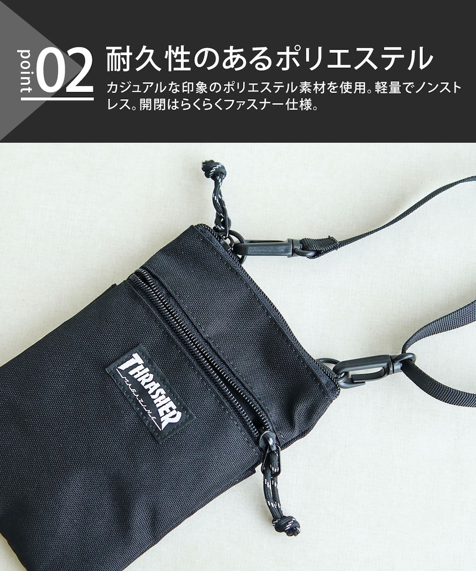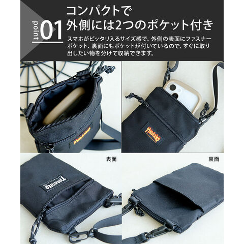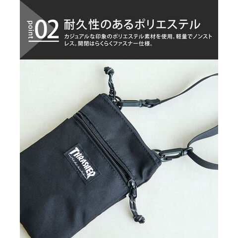 THRASHER ショルダー バッグ スマホ ショルダー ポーチ ポケット 付き ファスナー コンパクト 小銭 小物 入れ サブミニ ブランド ロゴ THR-020 スラッシャー