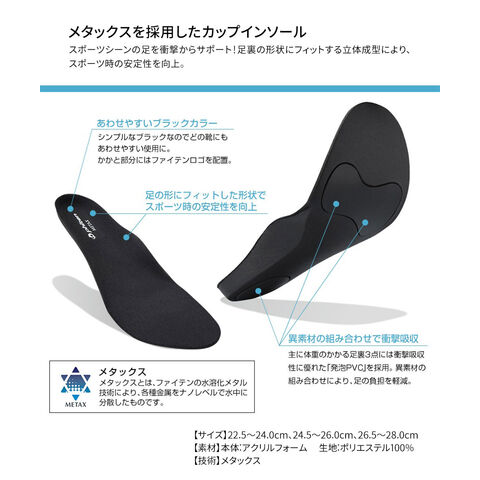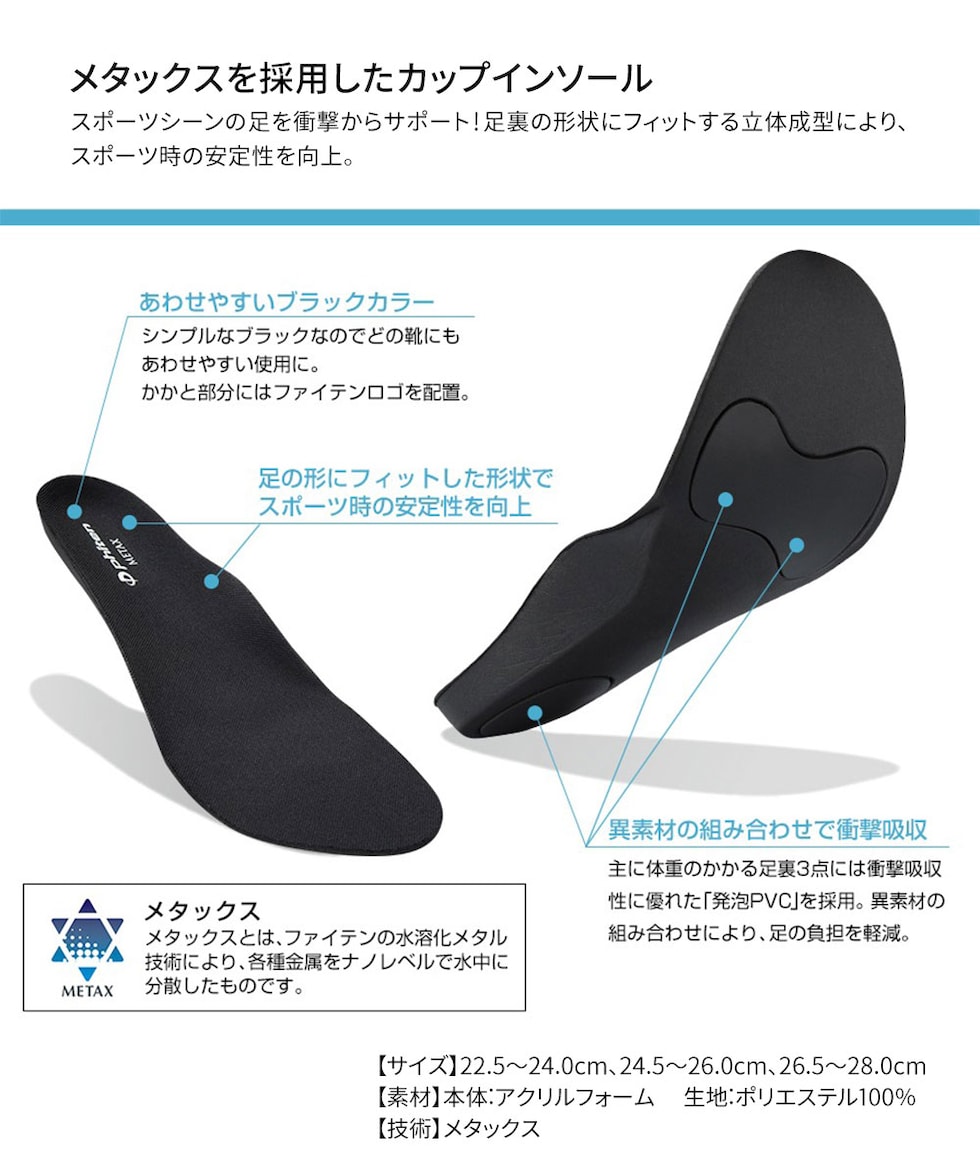 phiten ファイテン インソール 中敷き スニーカー カップタイプ メタックス 疲れない クッション スポーツ 立ち仕事 足の疲れ 衝撃吸収 部活