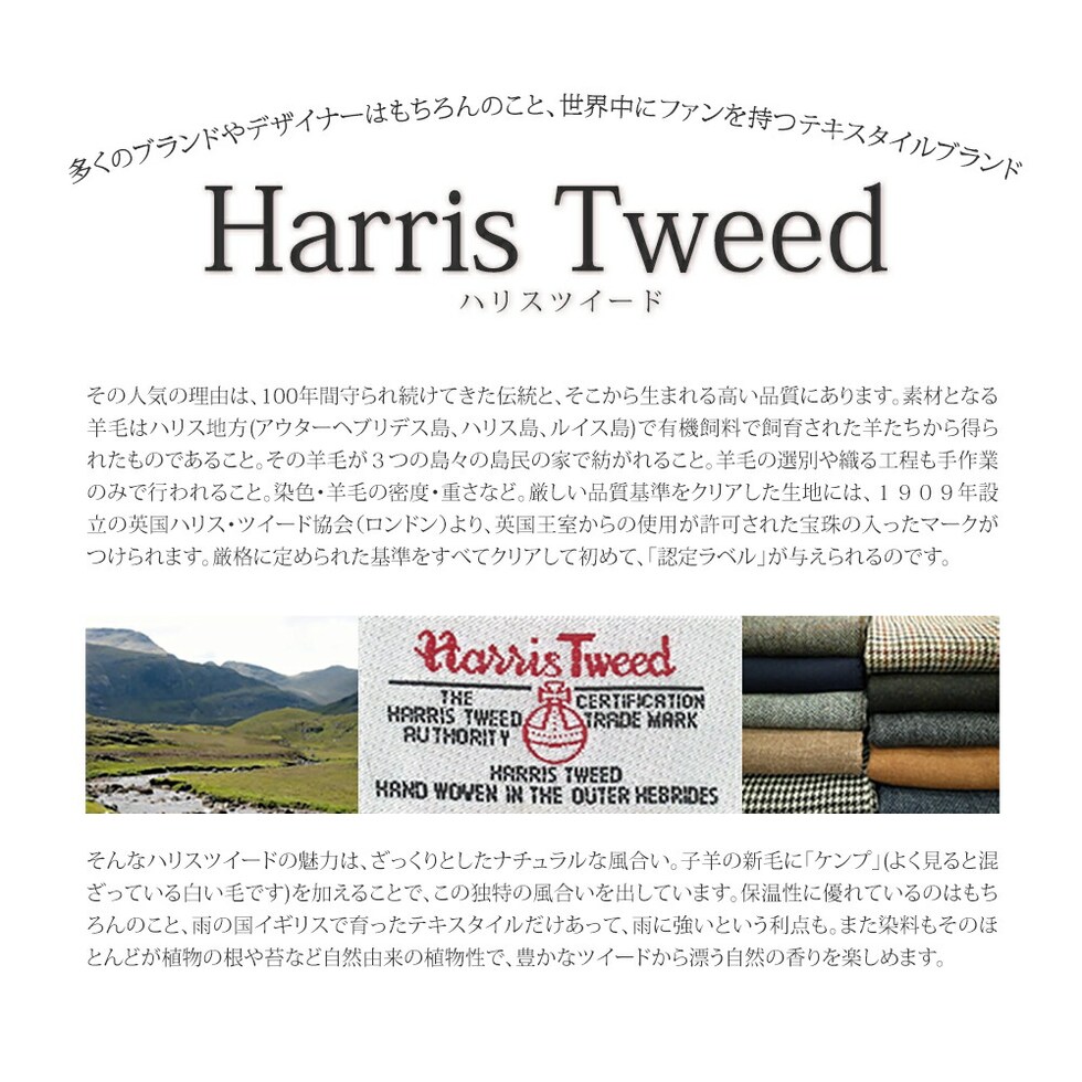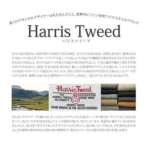 数あるツイードの中でももっとも品質がよく、丈夫で、なおかつ発色の美しい生地として 世界中に知られています。
