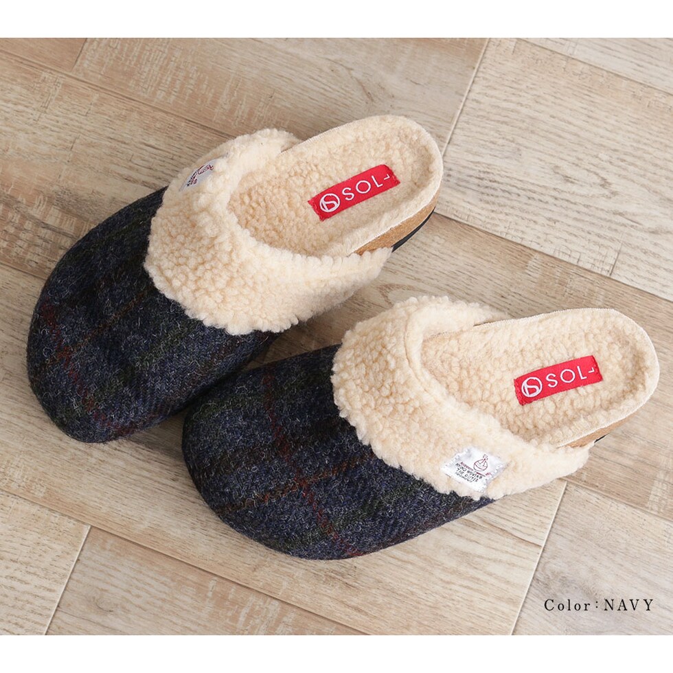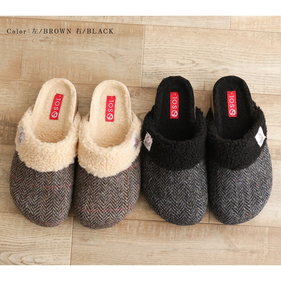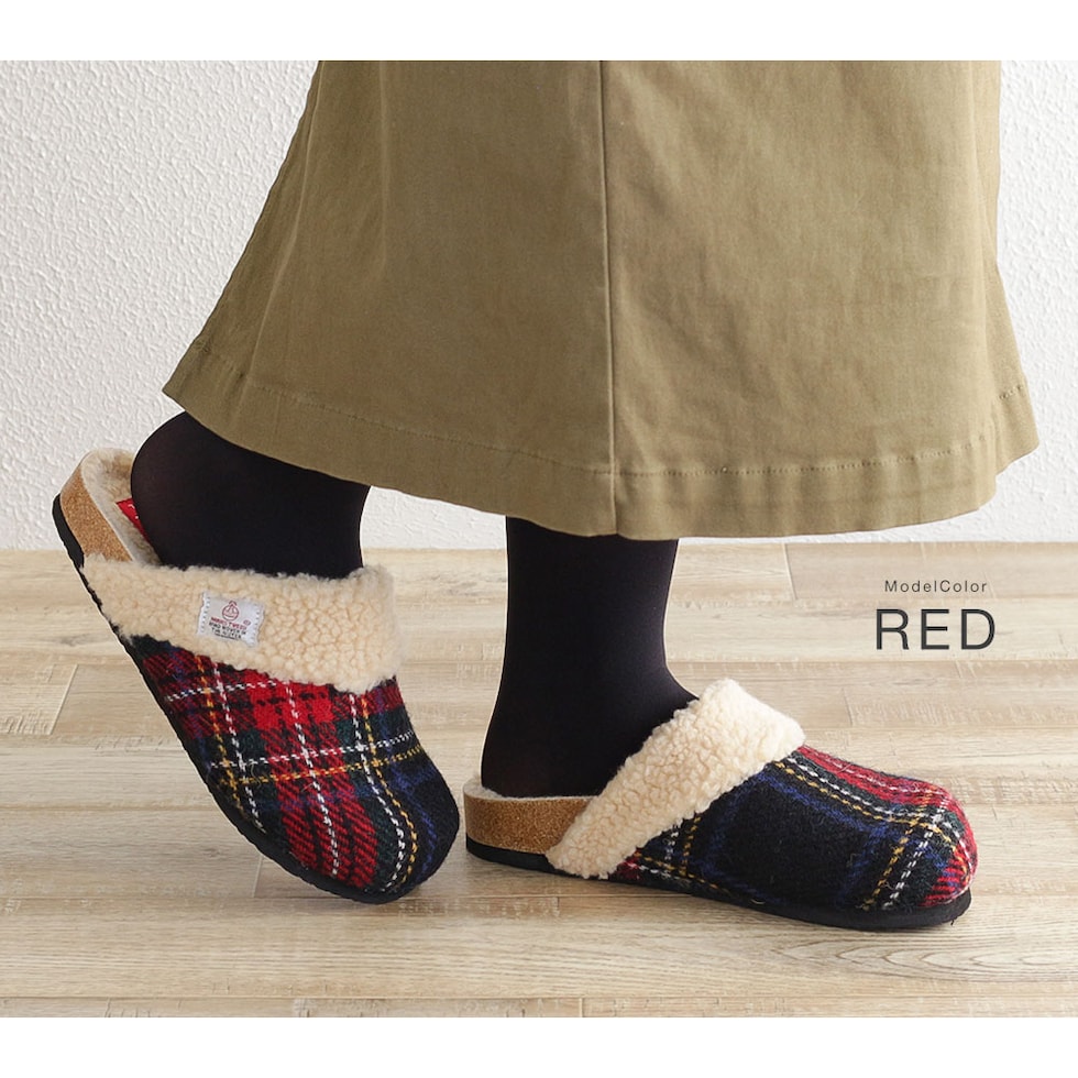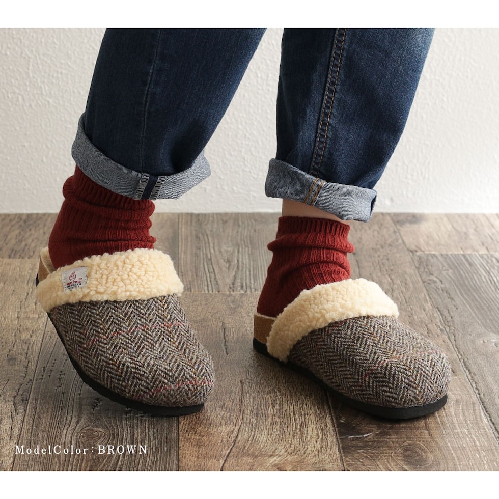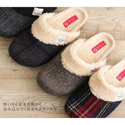 ハリスツイード 暖か サボサンダル レディース 秋冬 サンダル レディース 冬 つっかけ クロッグサンダル レディース 履きやすい ボア 裏起毛 もこもこ 防寒 暖かい スリッパ オフィス 黒 ブラック ブラウン ネイビー レッド 赤 21872 送料無料