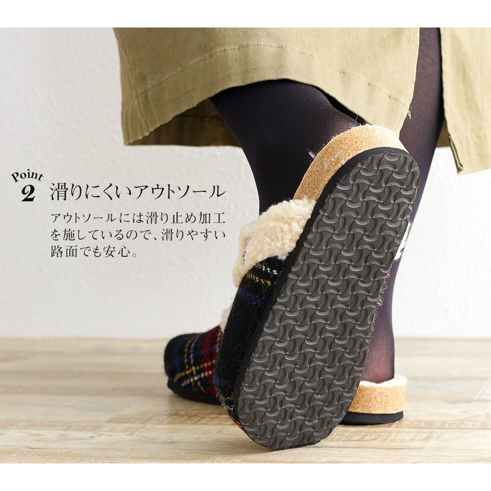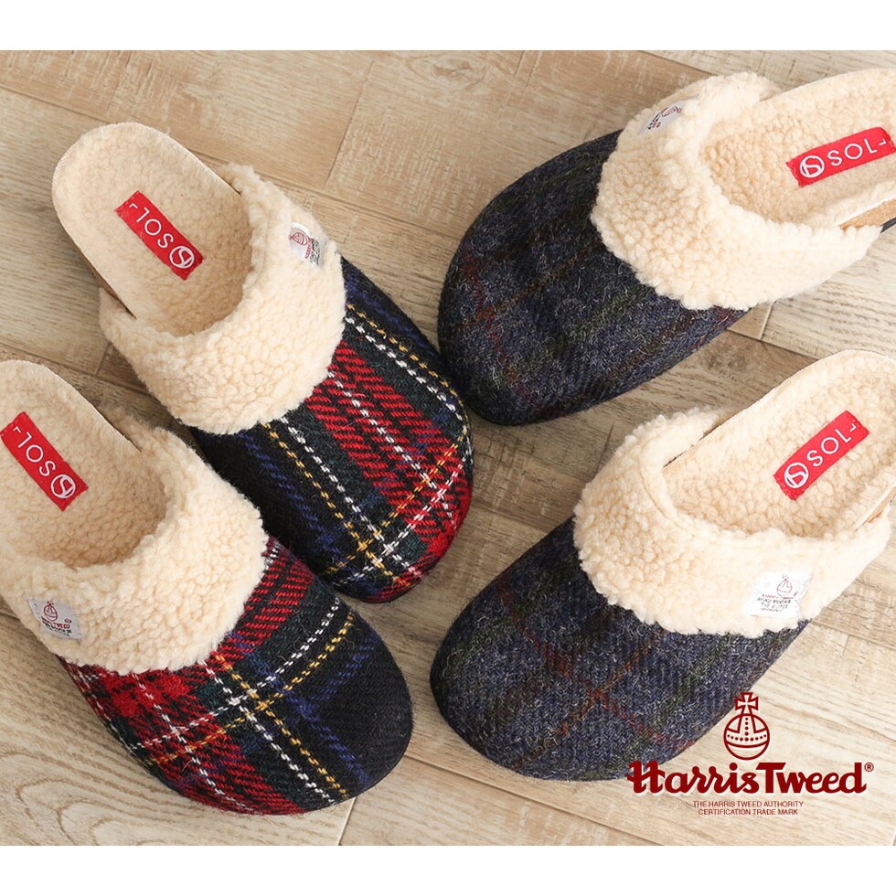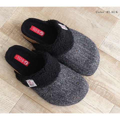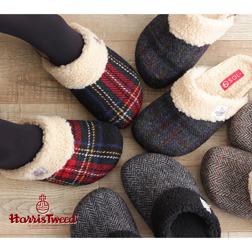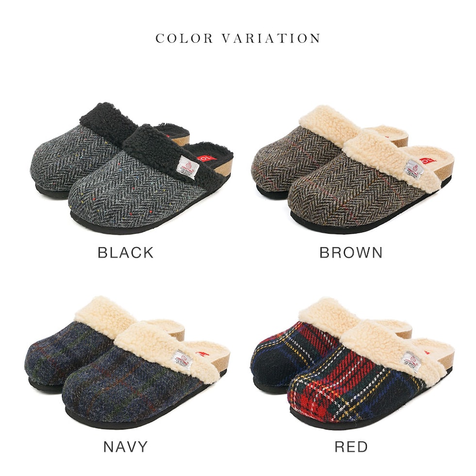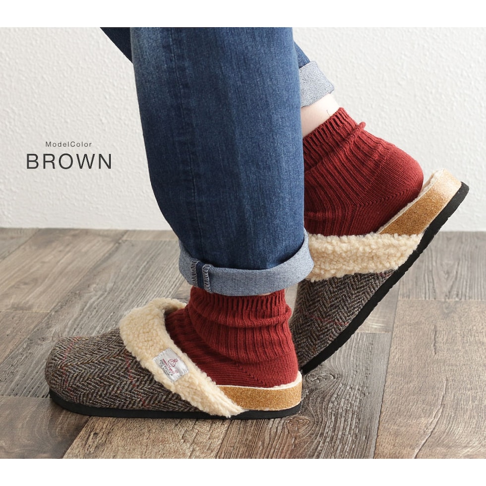 ハリスツイード 暖か サボサンダル レディース 秋冬 サンダル レディース 冬 つっかけ クロッグサンダル レディース 履きやすい ボア 裏起毛 もこもこ 防寒 暖かい スリッパ オフィス 黒 ブラック ブラウン ネイビー レッド 赤 21872 送料無料