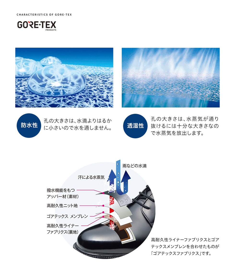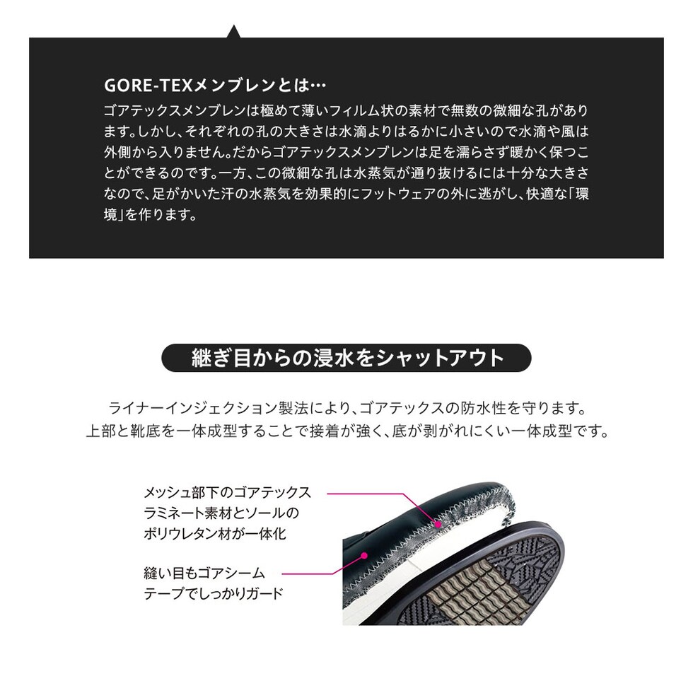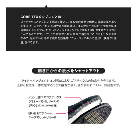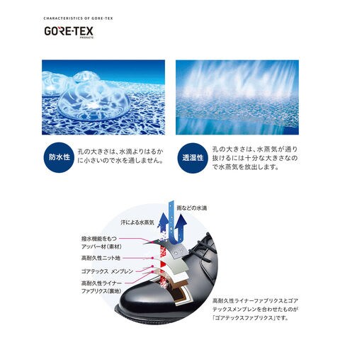 防水耐久性、透湿性を兼ね備え、足をドライな状態に保ちます。