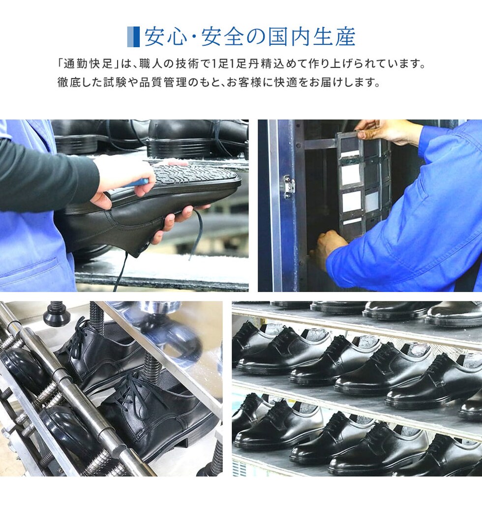 上部と靴底を一体成型することで接着が強く、底が剥がれにくい製法です。