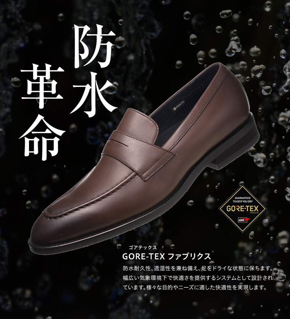 通勤快足 ビジネスシューズ メンズ 本革 防水 ローファー ロングノーズ 3E 通気性 防滑 ゴアテックス ブラック ブラウン TK7716