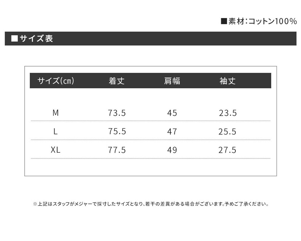 | 着丈 | 肩幅 | 袖丈 | |