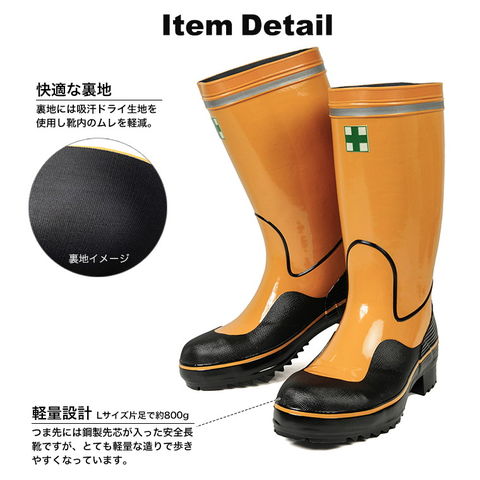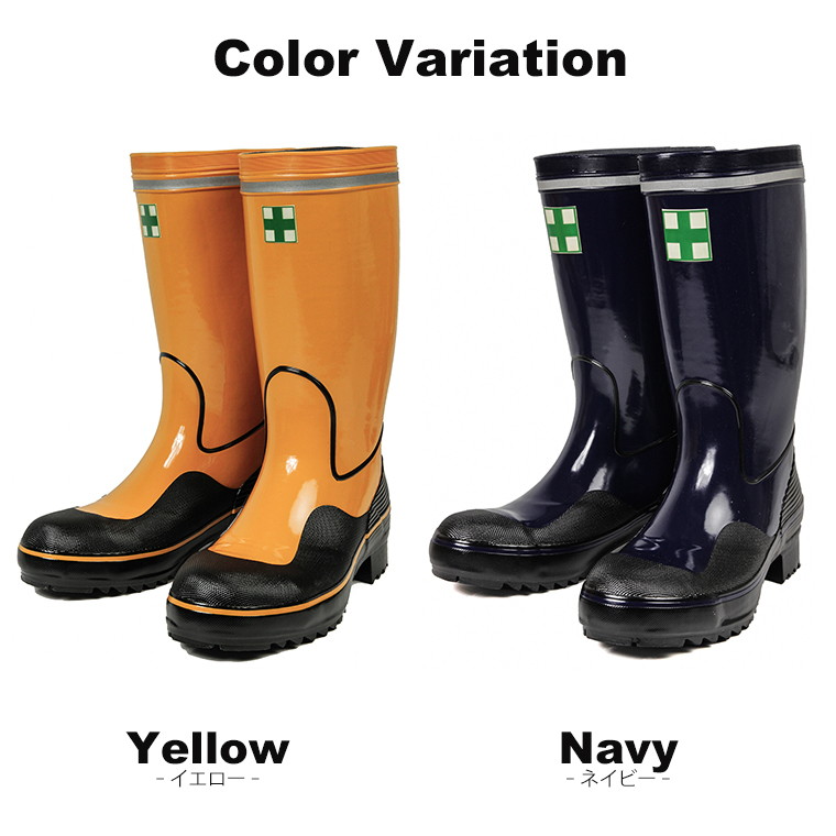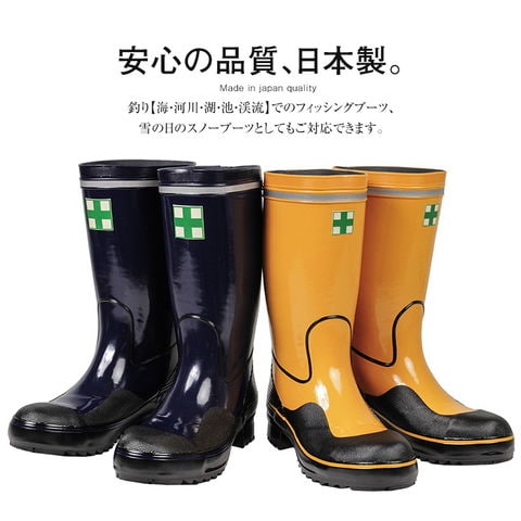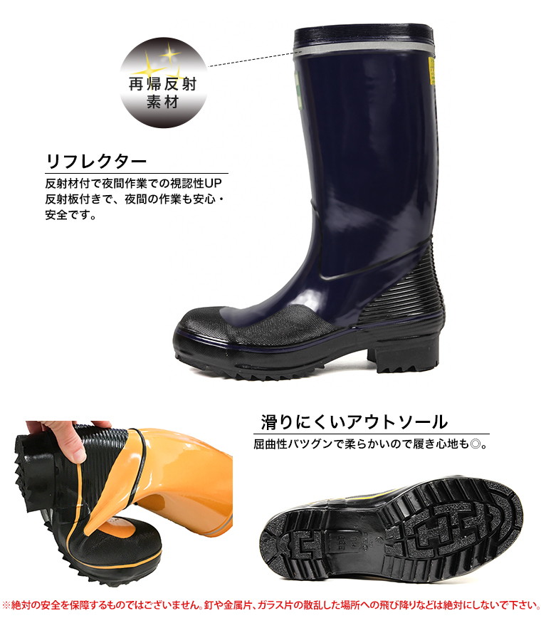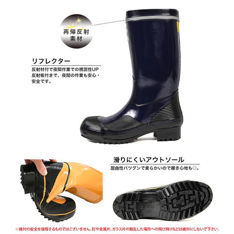 日本製 鋼鉄製先芯入 安全長靴 軽量 ロング 紳士 安全靴 長靴 作業用 作業靴 ワークシューズ 防水 防滑 反射板付き リフレクター セーフティーブーツ ハーフ丈 イエロー ネイビー tohog-anzengomu 送料無料